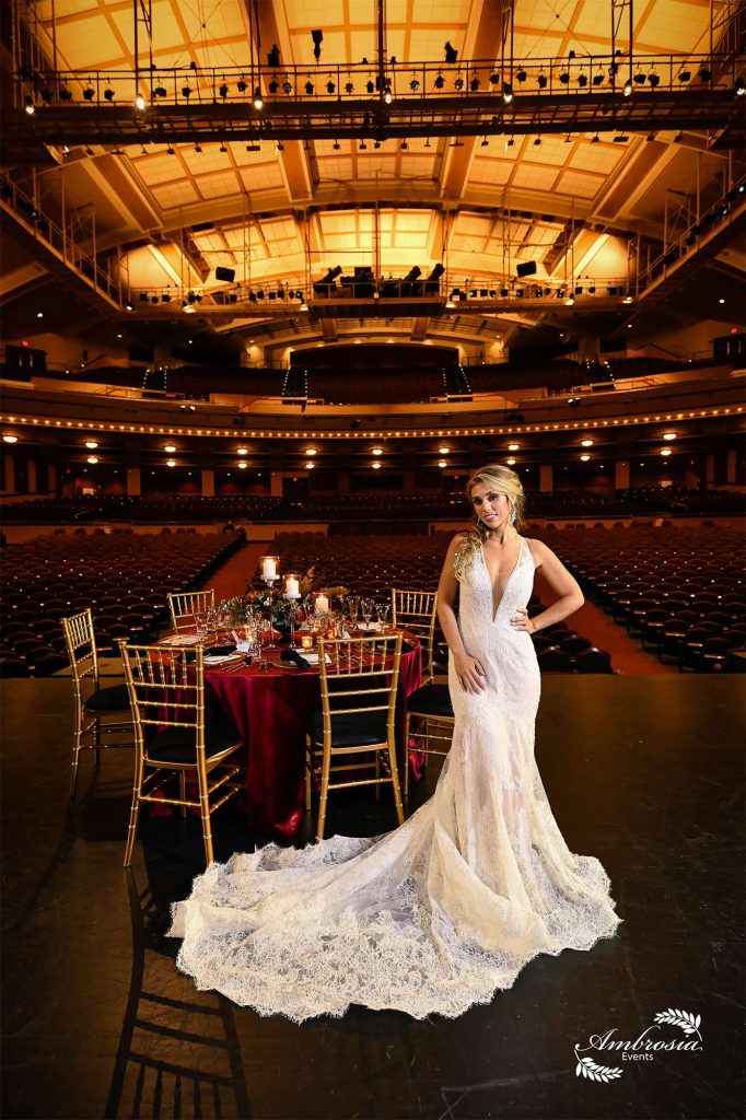 Ambrosia Events recently partnered with Miller High Life Theatre and collaborated with other event specialists to produce this beautiful wedding styling. Showcasing how Ambrosia Events can transform non-conventional space into a one-of-a-kind stylish event.