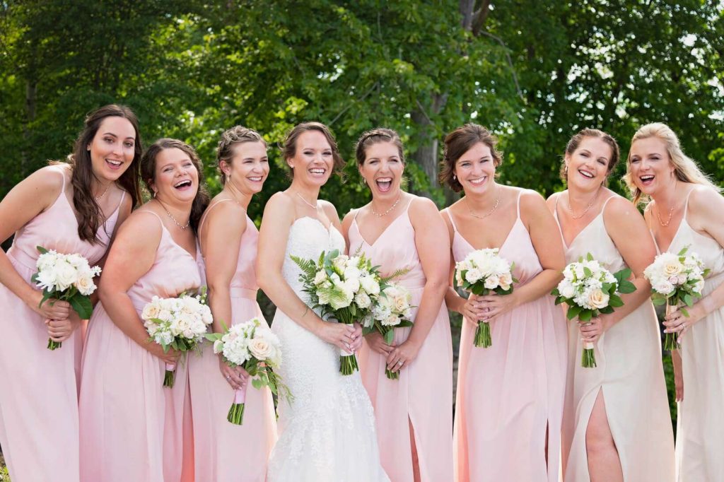 The amount of time for Wedding Party photos can vary depending on the size of the Wedding Party. I always make it a goal to capture the Groom/Groomsmen and Bride/Bridesmaids separately prior to the Ceremony. These each typically take about 20 minutes for the average bridal party size of 15-18 people. Full Bridal Party pictures are then captured following the Ceremony (after Family Formals) and typically take about 30 minutes. I personally photograph quickly and intentionally. I know exactly how I want to capture these moments before I even start and this saves on wasted time trying to get organized during the event itself. It also allows my couples and their guests to enjoy more time celebrating without having to lose out on missing images or moments.
