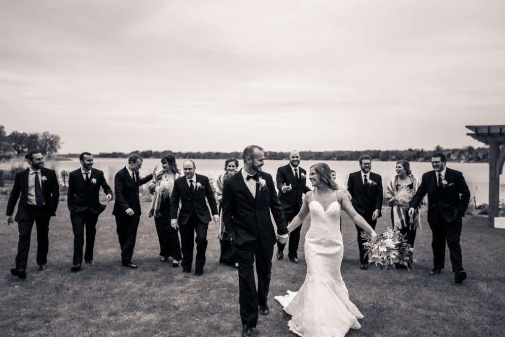 This all depends on the importance you put on photos with your wedding party, the size of your wedding party and the overall timeline of your day! However, generally planning thirty minutes for photos with you wedding party will give you enough time to have a mix of images including group, bride + bridesmaids, groom + groomsmen and individual shots.