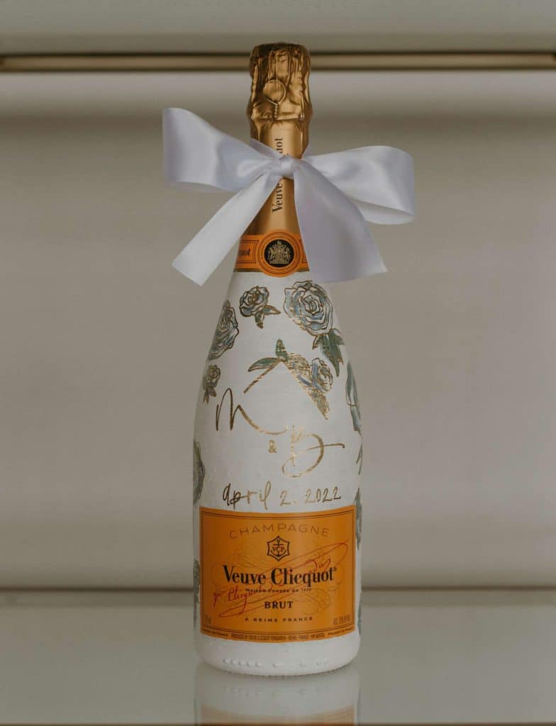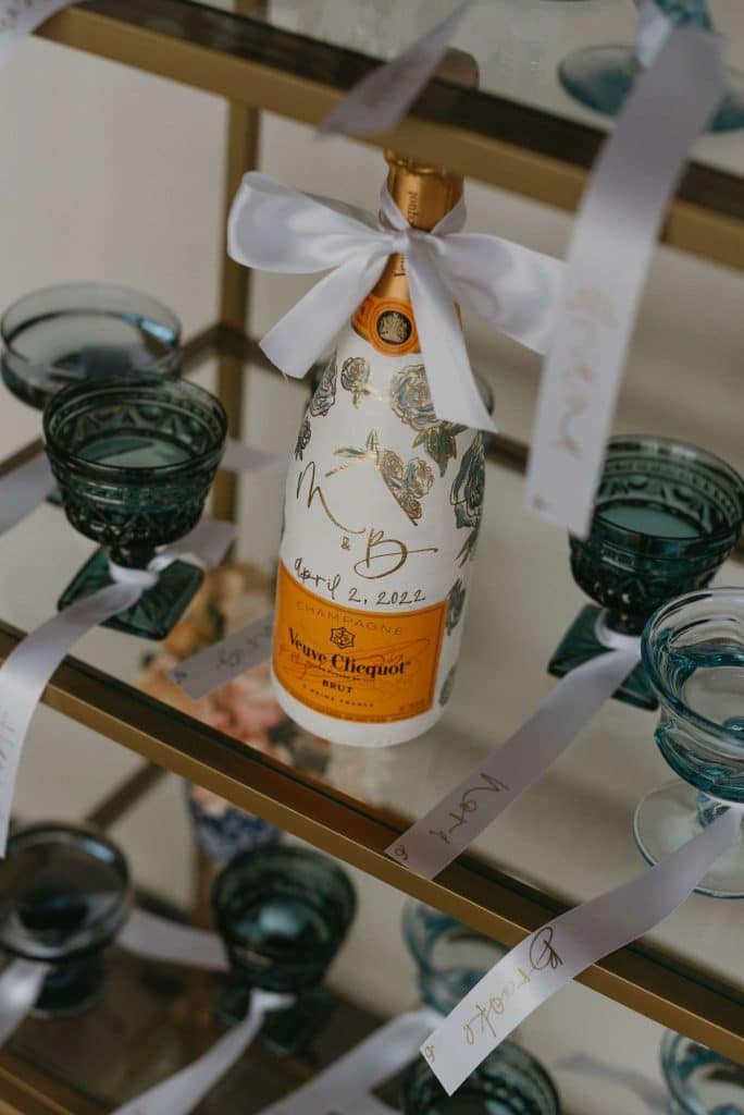 We asked Addie to tell us more about her inspiration: “When designing this invitation suite, ‘whimsical’ stayed top of mind from the moment I started exploring the goals for the shoot. I wanted to incorporate watercolor into each piece to bring in some texture and align with the hand-painted elements I added to the custom champagne bottle. My designs tend to lean towards a more boho, minimalistic style so it was really fun to explore a softer, more romantic direction for this shoot!”