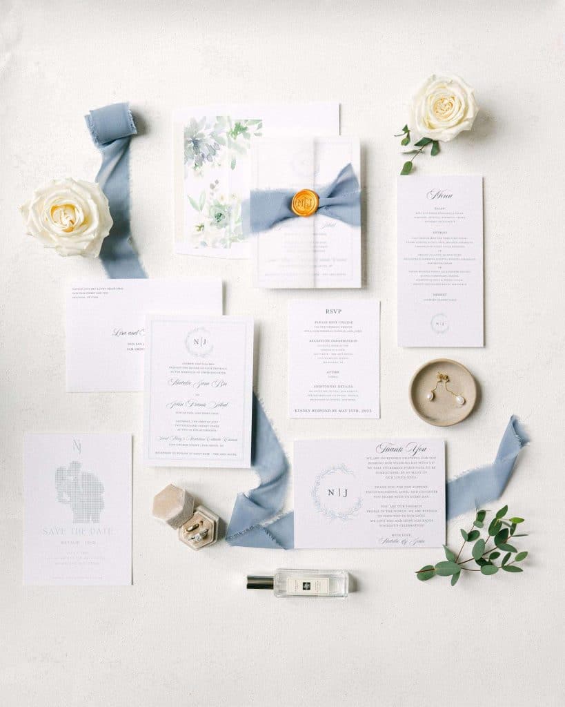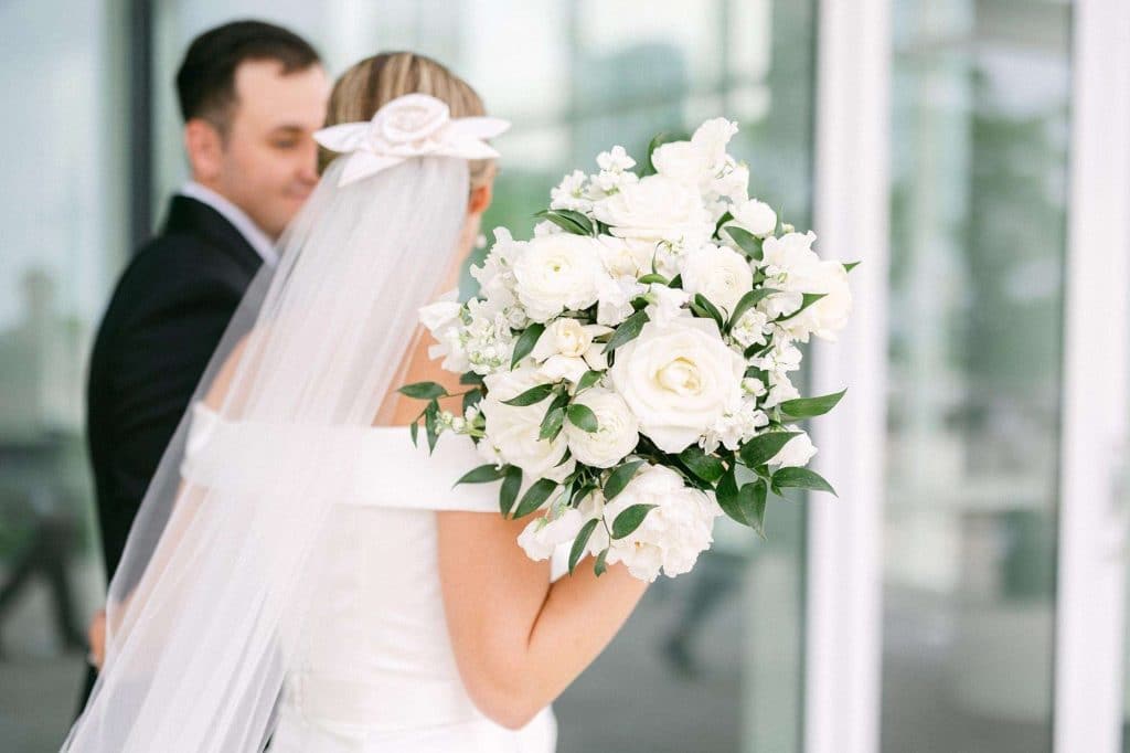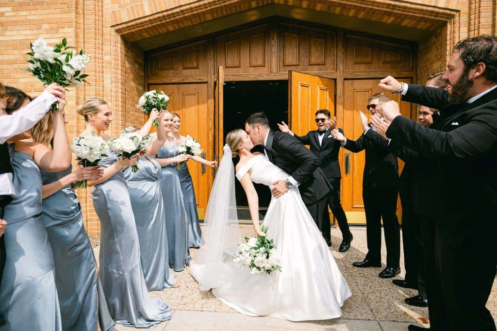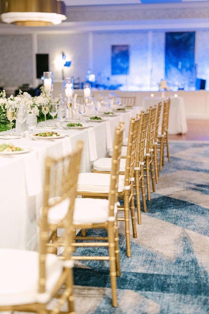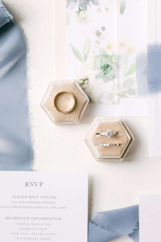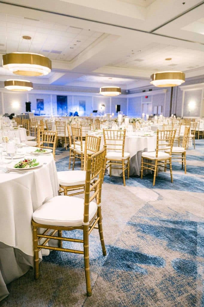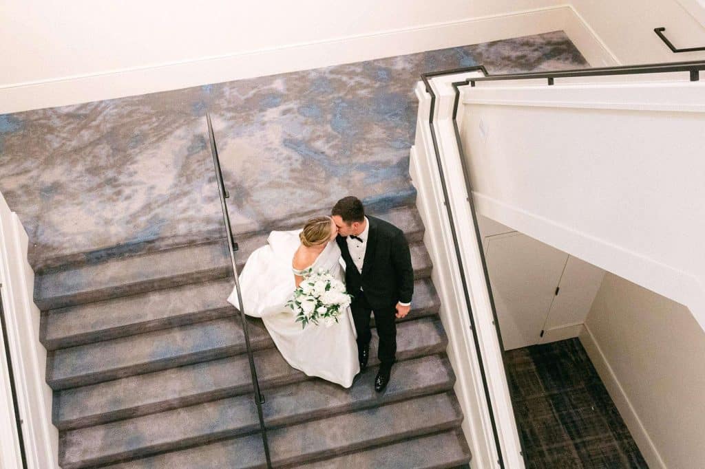 Natalie and John’s wedding had a classic theme, with a blue, gold, and white palette. Their venue, Saint Kate – The Arts Hotel, is known for its colorful, modern atmosphere. Jane Kelly Floral in Wauwatosa designed the gorgeous flower arrangements.