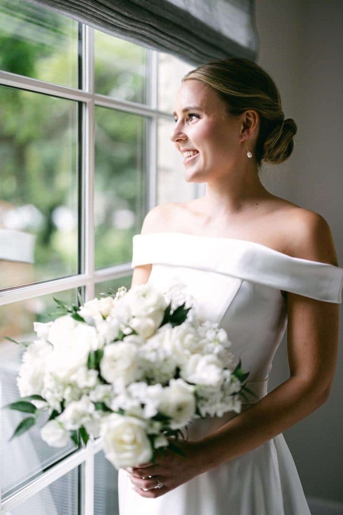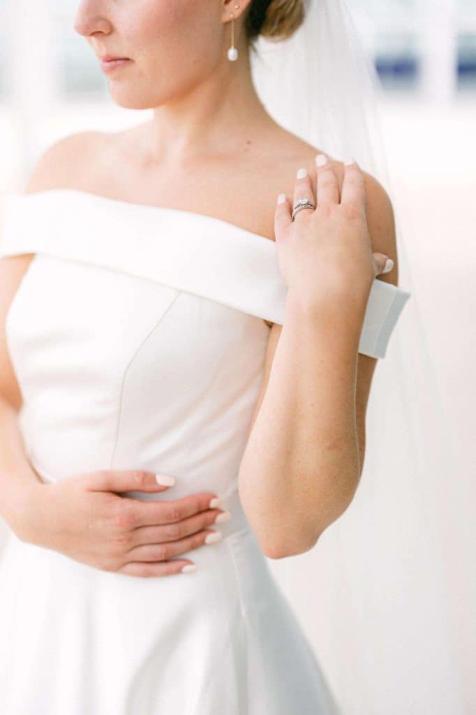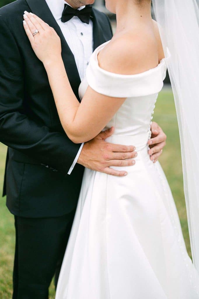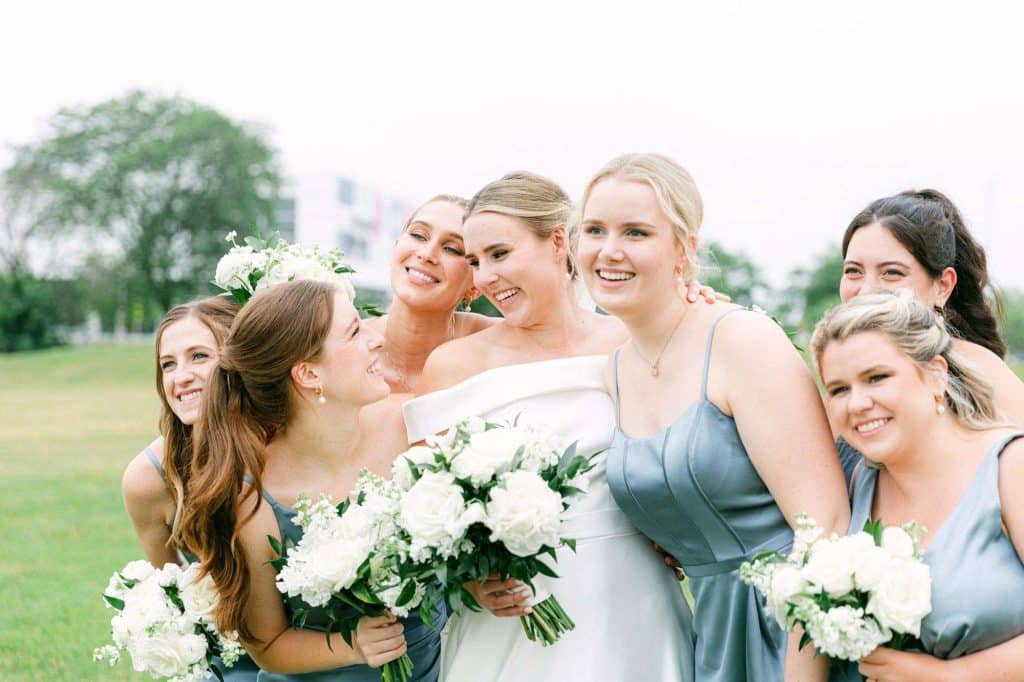 Natalie designed her custom wedding dress at Miss Ruby Bridal Boutique in Milwaukee. Her dress was the best design element of her big day. When she went dress shopping with her mom, future sister-in-law, and grandma, she had a very specific vision in mind, but couldn’t find anything that matched what she was looking for. Miss Ruby, however, sells custom dresses, which allowed Natalie to bring her design dream to life. She selected the fabric, shape, and skirt and added a belt, neckline, and of course, pockets!