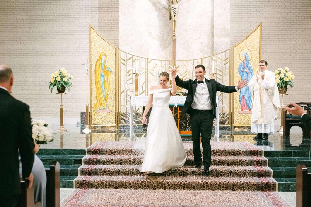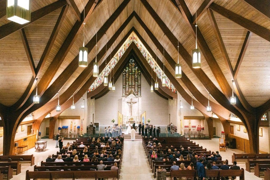 Natalie and John’s wedding ceremony was at St. Mary’s Visitation Catholic Church in Elm Grove, where Natalie went to grade school. The last time she had walked down the aisle was for her first communion, when she wore a much smaller white dress.