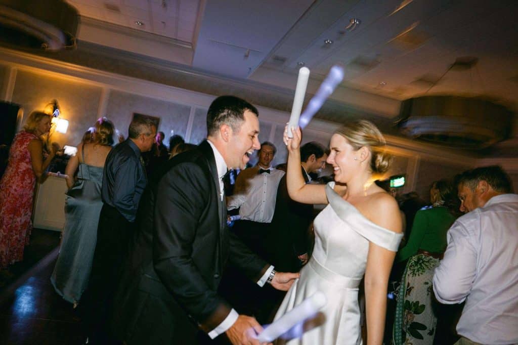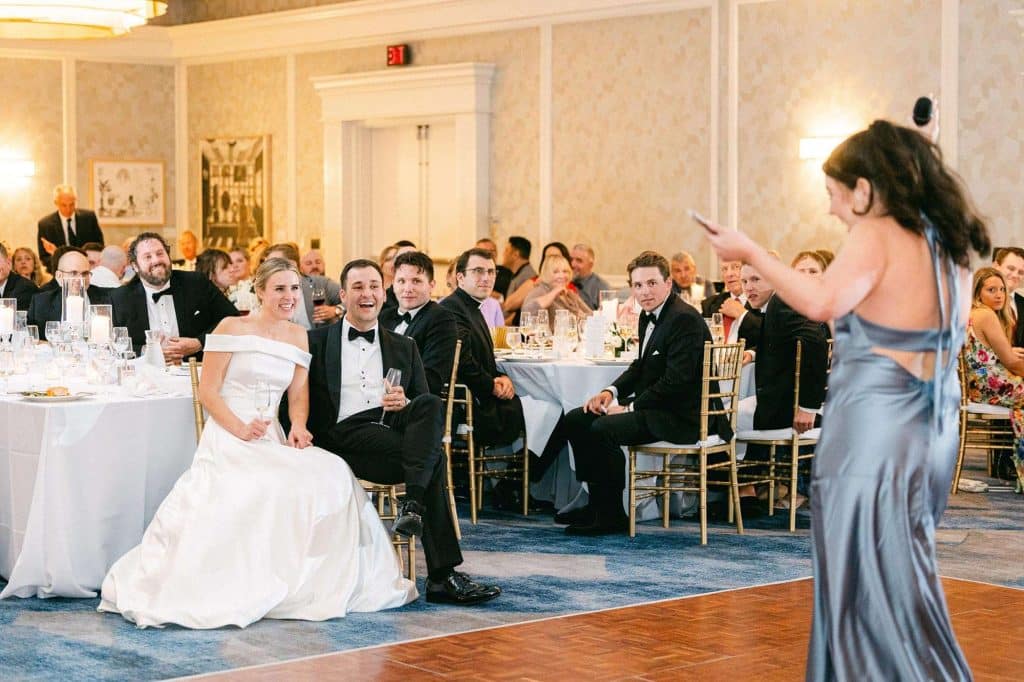 During the reception, Natalie, John, and their bridal party participated in a grand entrance, which pumped up the energy level in the room. To make sure they snapped photos with all of their loved ones, they went from table to table. There wasn’t a dry eye in the room during the dinner speeches from Natalie’s father, the best man, the maid of honor, the matron of honor, Natalie’s cousin, and John’s brother and sister-in-law. Last but not least, John gave an improvised speech to express his love for his new wife, and everyone cried even more.