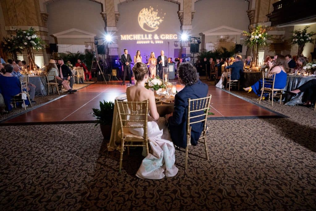 Ever since Michelle and Greg moved to Milwaukee, they have dined at Bartolotta’s Lake Park Bistro to celebrate nearly every anniversary and birthday. Naturally, they knew early on that they wanted Bartolotta’s to cater their wedding dinner. They met with Maria Bartolotta, Director of Catering, for the tasting, and she was a highlight of the entire planning process. The food was, of course, astoundingly delicious. The menu included seared salmon on a bed of asparagus with celery root and potato puree covered in champagne beurre blanc and filet mignon in a cognac cream sauce over garlic pureed potatoes with grilled broccoli rabe.