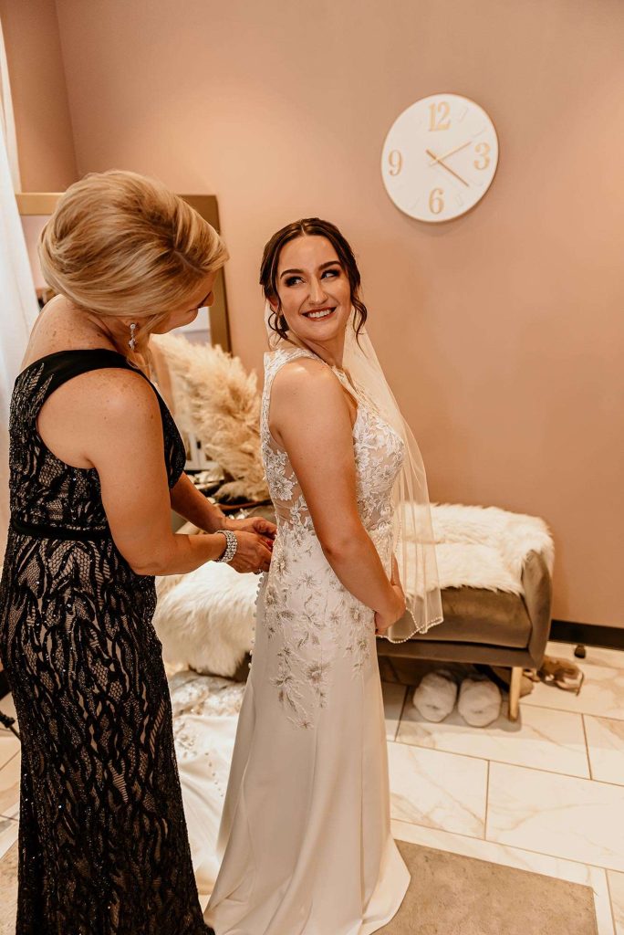 Kayla had tried on nearly 30 dresses and was starting to get discouraged when she found the perfect dress at Bliss Bridal. She credits her stylist, Sky, with finding the dress she loved.