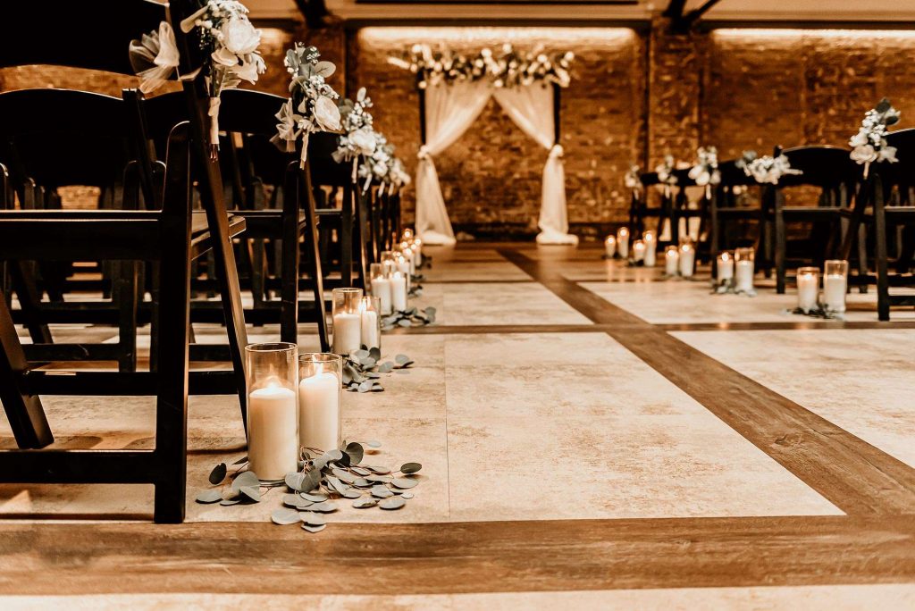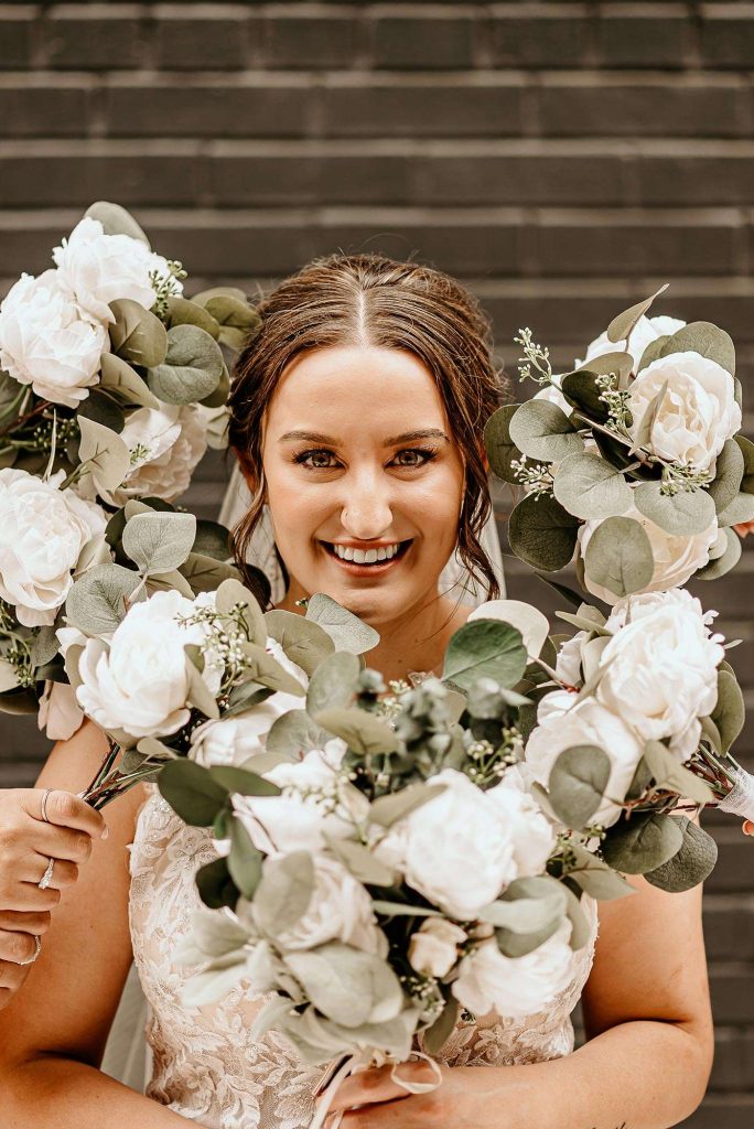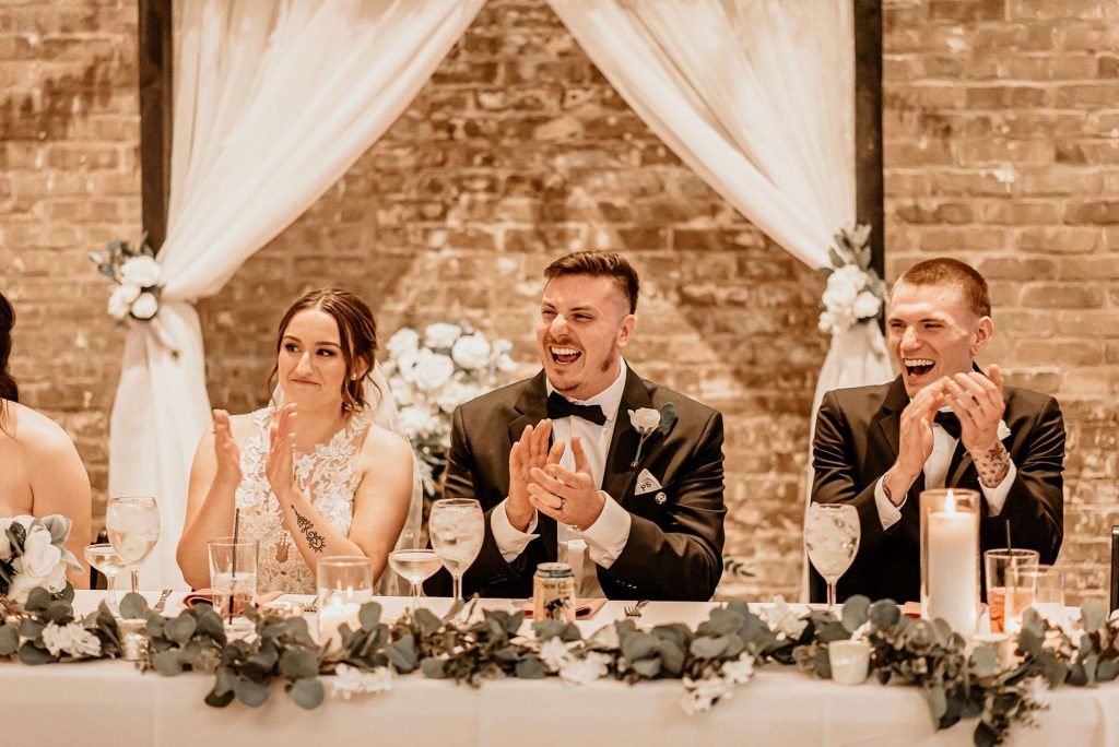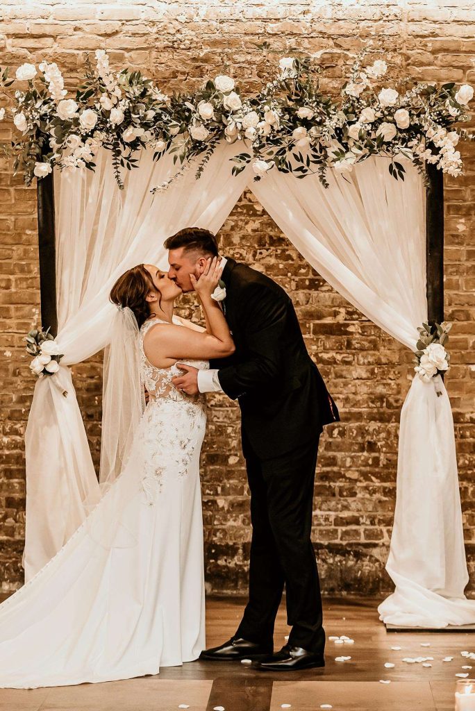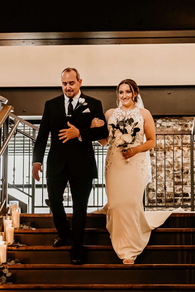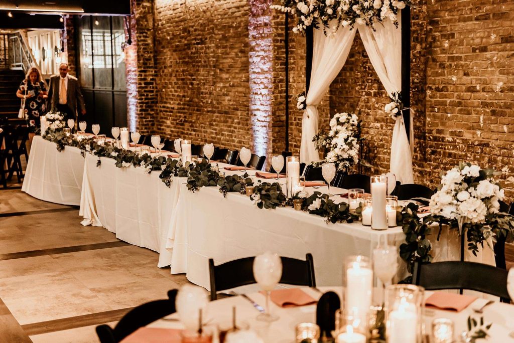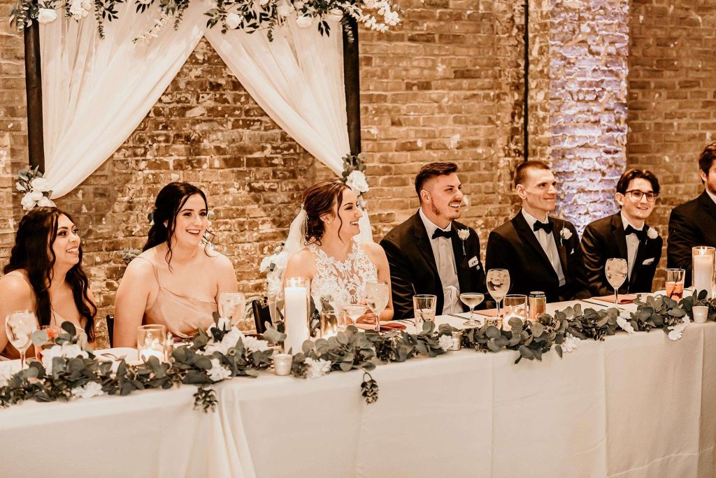 “Our reception was such a dream”, Kayla says. “We had candles glowing all over the room, the head table was filled with greenery, and our arch by Archangel Services made a beautiful backdrop.” Kayla and Patrick’s favorite part of their wedding was seeing all of the people they loved in such a beautiful place with them.
