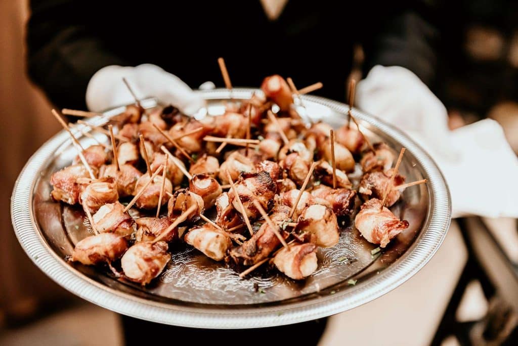 Chef Jack’s Catering provided the food, which the couple raved about as “so delicious!” Appetizers included mini grilled cheeses with a shot of tomato soup, raspberry brie bites, shrimp scampi, bacon wrapped chestnuts, caprese skewers, and tenderloin crostini’s. For dinner, Chef Jack’s served pasta salads, tenderloin tips, Chicken En `Croute, and Parisian oven roasted potatoes.