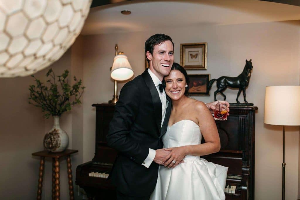 When Pete and Erin decided to meet in-person, they had their first date at Scofflaw, a cocktail bar in Chicago. A week later, they grabbed dinner at one of their now-favorite restaurants, and after a few drinks, walked across the street to a cozy Irish pub and had their first kiss. The rest is history.