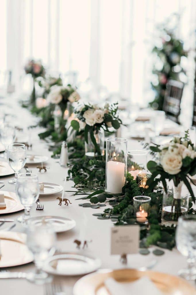 The card holders were DIYed from gold spray painted safari animal figurines, which were a perfect complement to the space as well as their honeymoon.