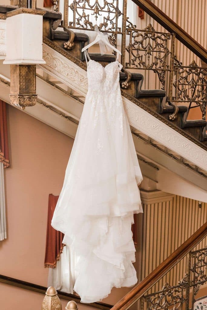 Kimmy found her dream wedding dress, a gown designed by Sophia Tolli, at Mariolka’s Bridal Boutique in Boynton Beach, Florida. After trying on upward of 15 dresses, her mom teared up when she saw her daughter in the dress. In that very special moment, she knew it was the one!