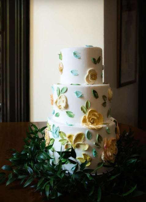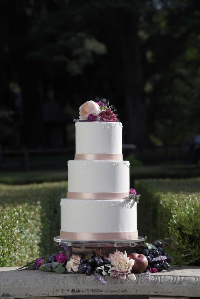 Having a wedding cake is timeless and classic and sure to please everyone. If you’re more of a bride or groom that thinks outside the box, talk with your wedding cake vendor about adding a “pop” of color or unique design element. The cake is a work of art in itself.
