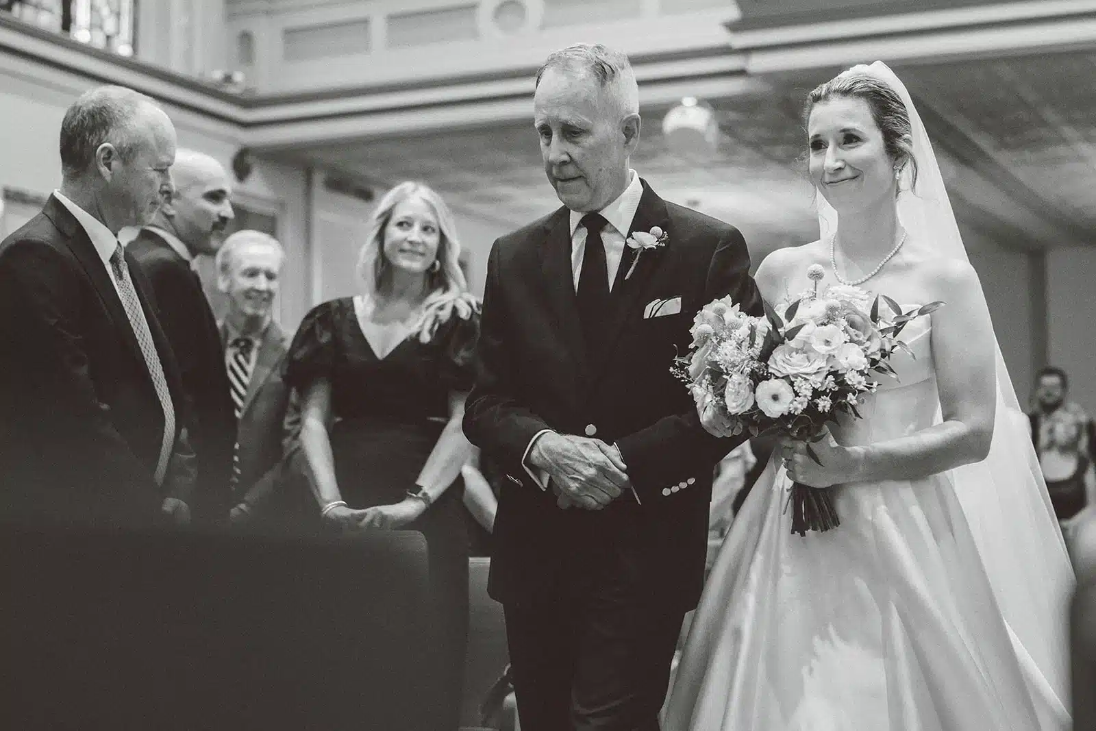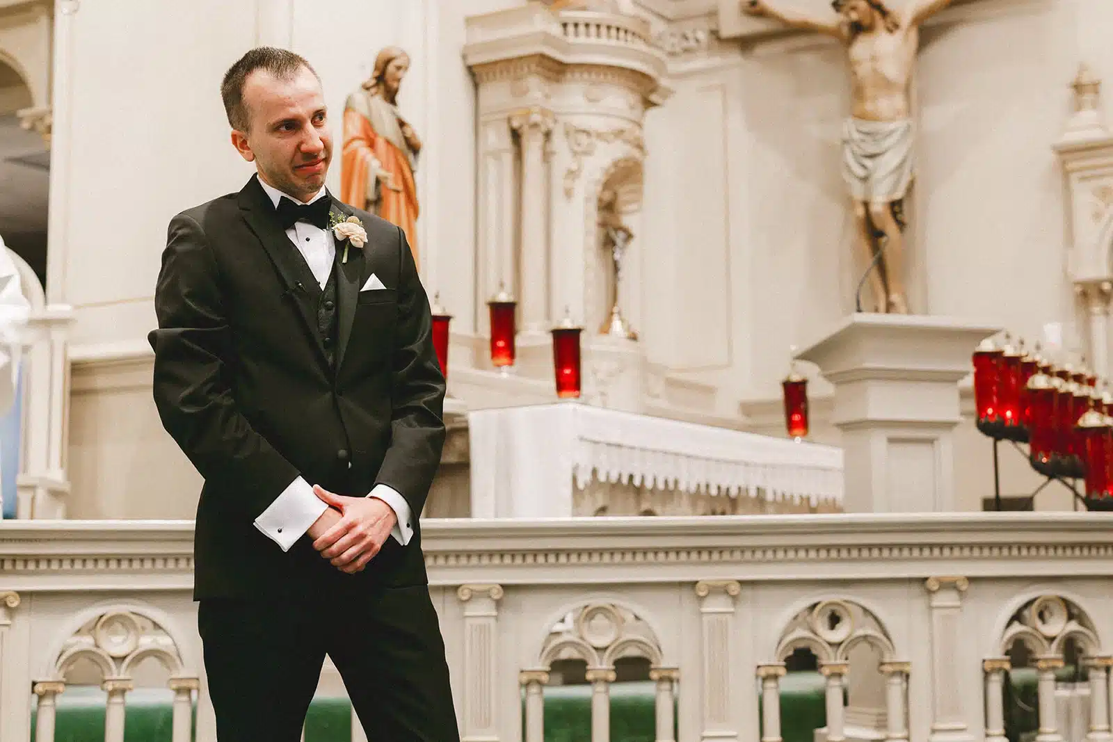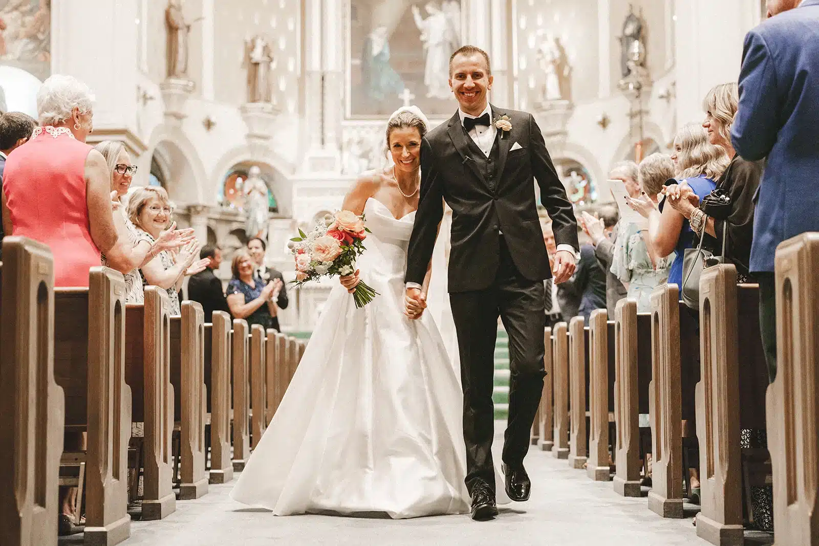 “It was very important to us and both of our families that we got married in the Catholic Church, so Old Saint Mary’s was a wonderful choice. It was quite the process to prepare to get married in the church and our ceremony was fairly traditional, but it felt right given our upbringing; plus, it helped us start out our marriage in the best way possible. I was debating whether we needed a string quartet for our ceremony and I’m glad we did; it made the ceremony feel so elegant and magical and it really added to the ambiance. My favorite part was seeing Neil down at the end of the aisle and everything just felt so right!’