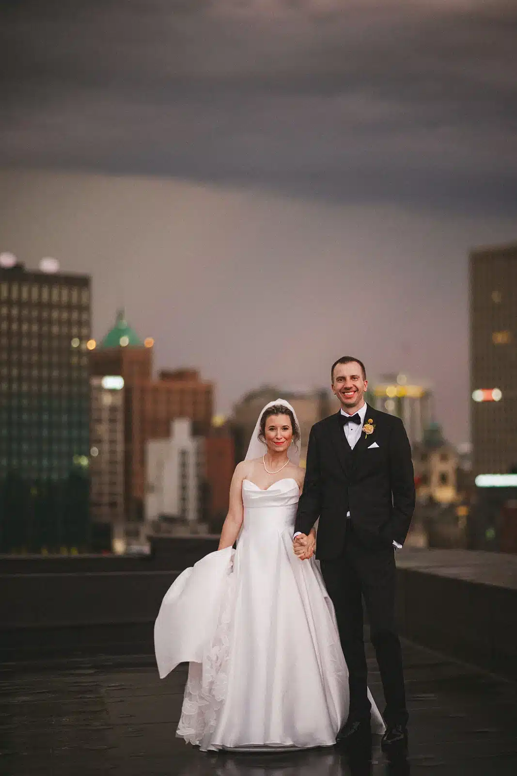 “We chose the Pritzlaff as our venue because it offered rooftop photos with a backdrop of the iconic Milwaukee skyline (especially the Hoan Bridge, which is one of our favorite parts of the city). It felt like such a magical experience for the two of us to be up there with such an impressive view and it was a chance for us to sneak away from the party and get a private moment for ourselves. Despite the weather, we got some great shots and even captured a lightning bolt in the video footage!”