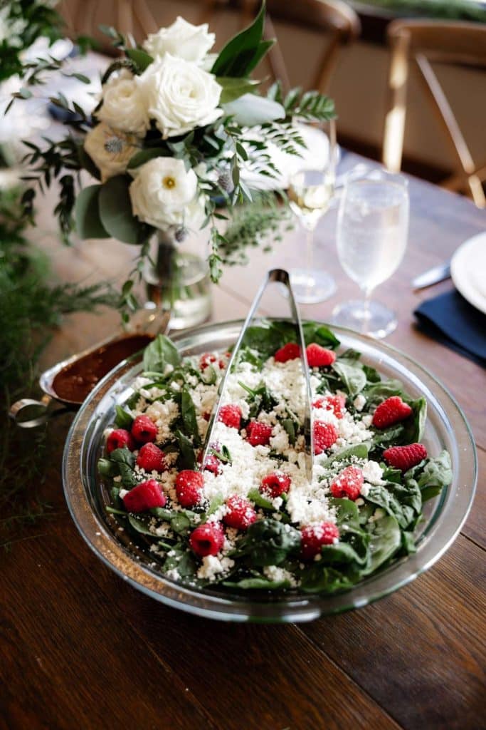 For the nights food and beverage, Jordan noted that “Our venue provided hors devours and dinner. Everyone raved about the food! Our hors devours included lobster bites, beef wellington bites and a brie cheese tart bite. Dinner included braised short ribs with risotto, fried honey siracha chicken with veggies and a strawberry vinaigrette salad with rolls. We had a full open bar and signature drink, The Bulleit Old Fashioned named “The Johnny” for Noah’s dad.”