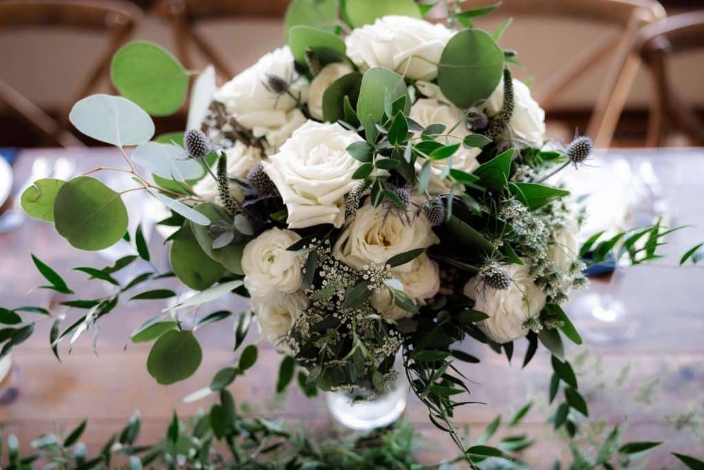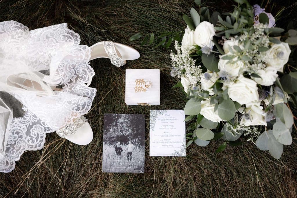 The wedding was planned in The 1896 Room at The Club at Lac La Belle with the overall theme of earthy, classy and minimalist. The color palette consisted of greens and blues.
