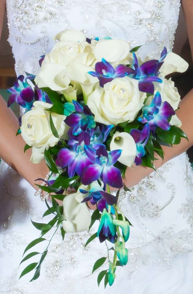 Haha, it’d be easier to count which ones I don’t like. J I really love the vibrant color palates and a mix of different textures. My wedding flower was the Blue Bombay Dendrobium Orchid. It’s a dyed orchid that has a vibrant teal center blending out to a deep purple outer petal. It works so well with a huge variety of color palates and is very versatile! Perfect for cascades, handhelds, and submerging under floating candles on the table! Definitely one I always jump to recommend if it works into a bride’s scheme. ;)