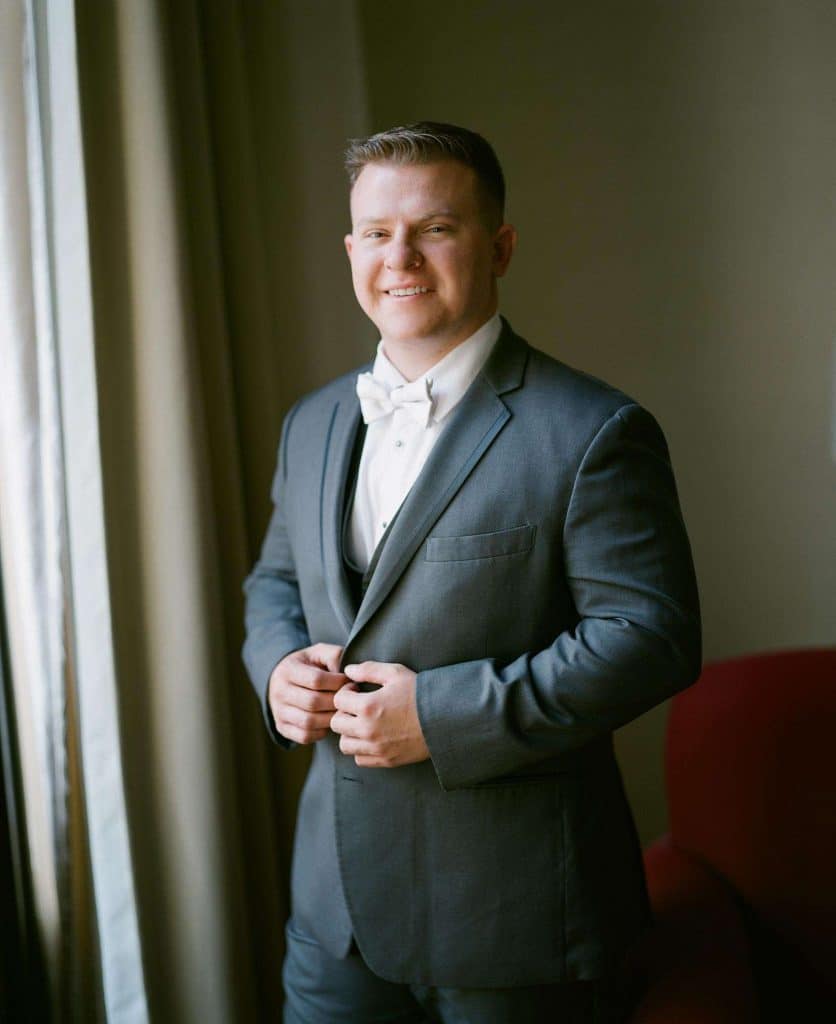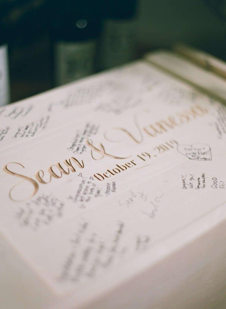 While Vanessa and Sean didn’t opt for many DIY projects, there was one particularly heartfelt touch: “I feel it’s worth mentioning Sean’s bow tie,” Vanessa explains. “Sean’s mom passed away when he was 15. I surprised him that morning with a bow tie and pocket square made from the material of his mom’s wedding dress. He had no clue until we exchanged cards on our wedding morning.”