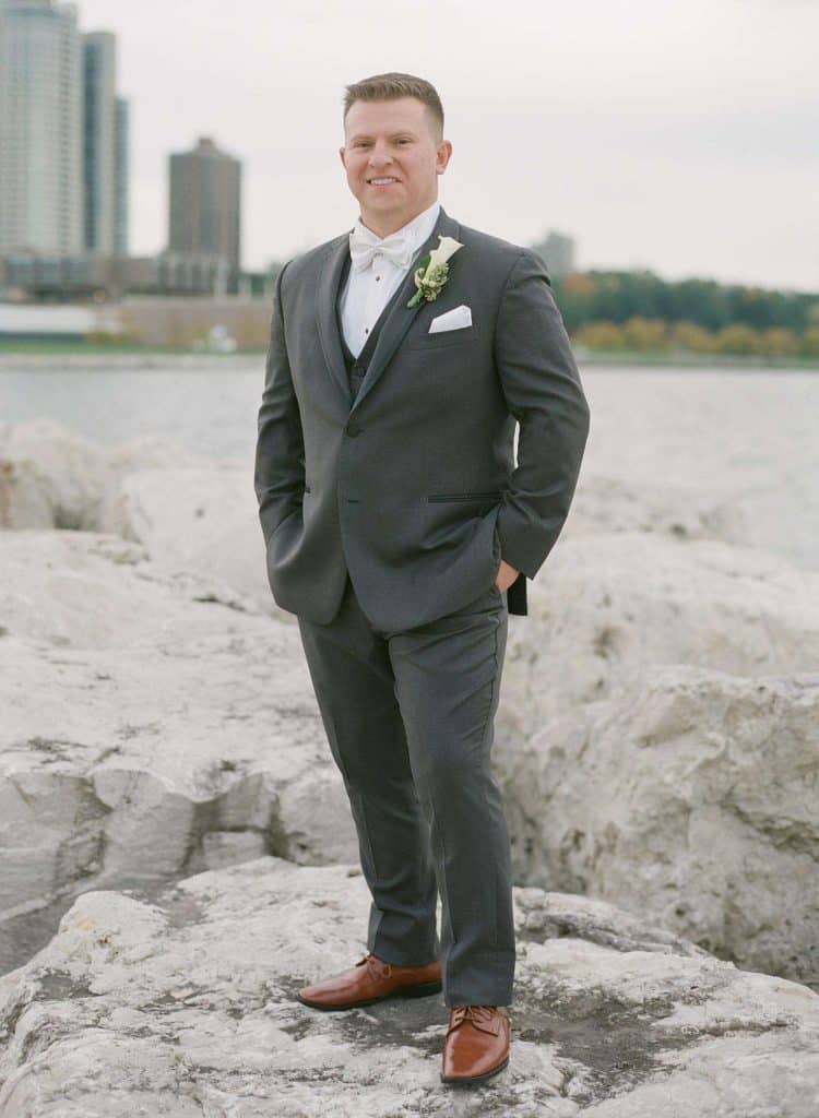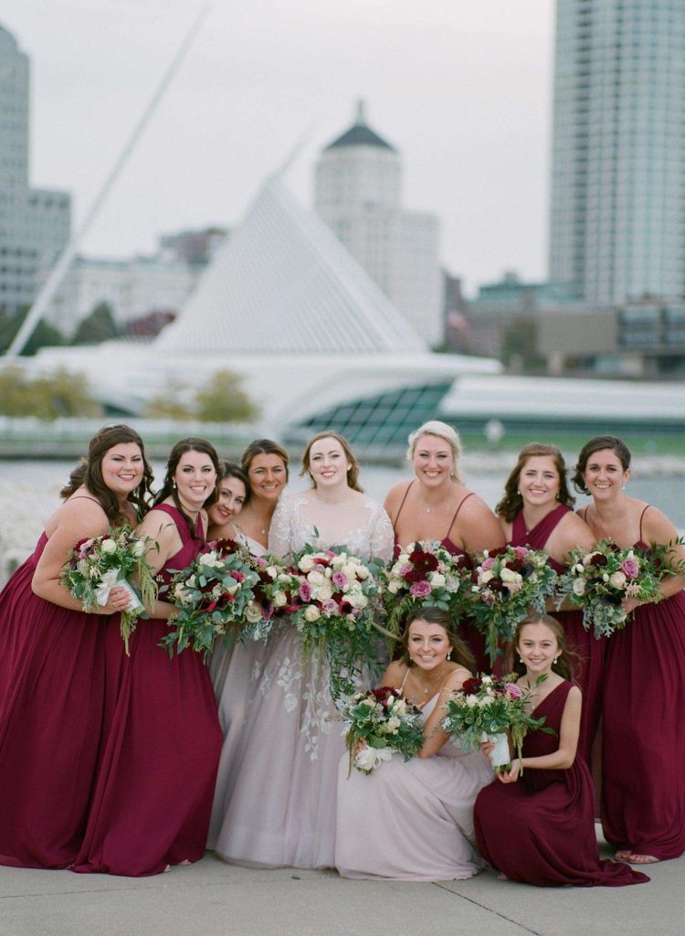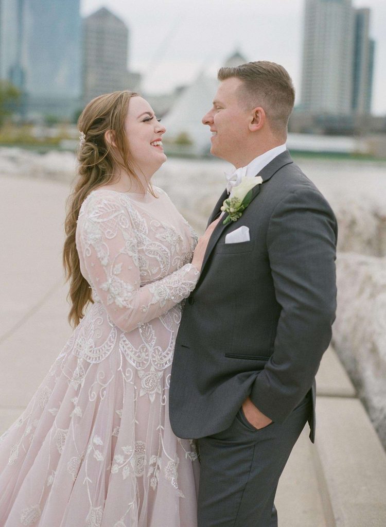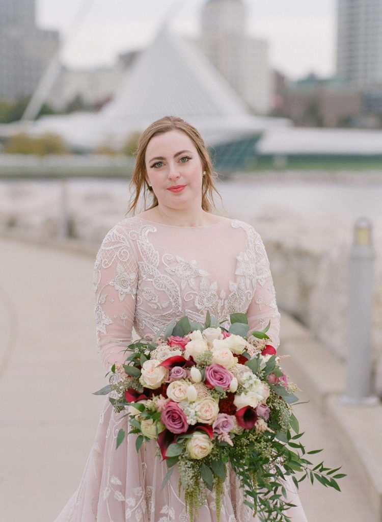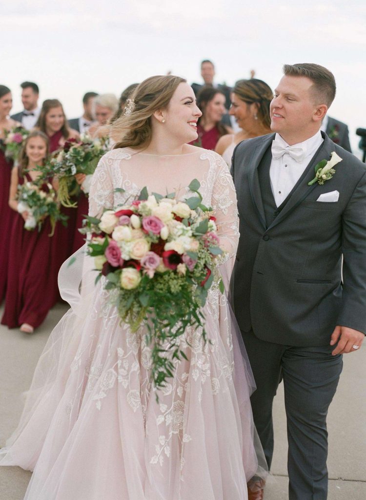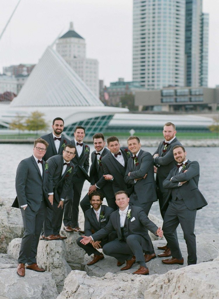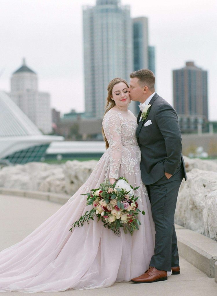 Following the ceremony, Vanessa and Sean took a photo detour to the lakefront near the Milwaukee Art Museum and Discovery World. “It was a beautiful day and the lighting was absolutely perfect. Our videographers and photographers are so creative and have a great eye. They made a simple backdrop stunning with the natural sky and beautiful city skyline.”
