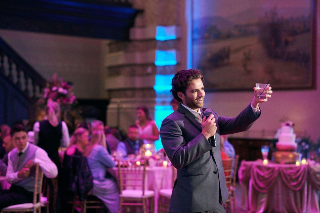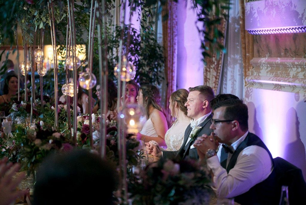 Sean and Vanessa’s reception followed what their planner called a “New York” schedule of events. “This meant that instead of sitting down for dinner and waiting for each course to be cleaned and served, we danced and partied between courses while the plates were picked up and the next course was served. We think it really brought up the overall energy of the entire reception.”
