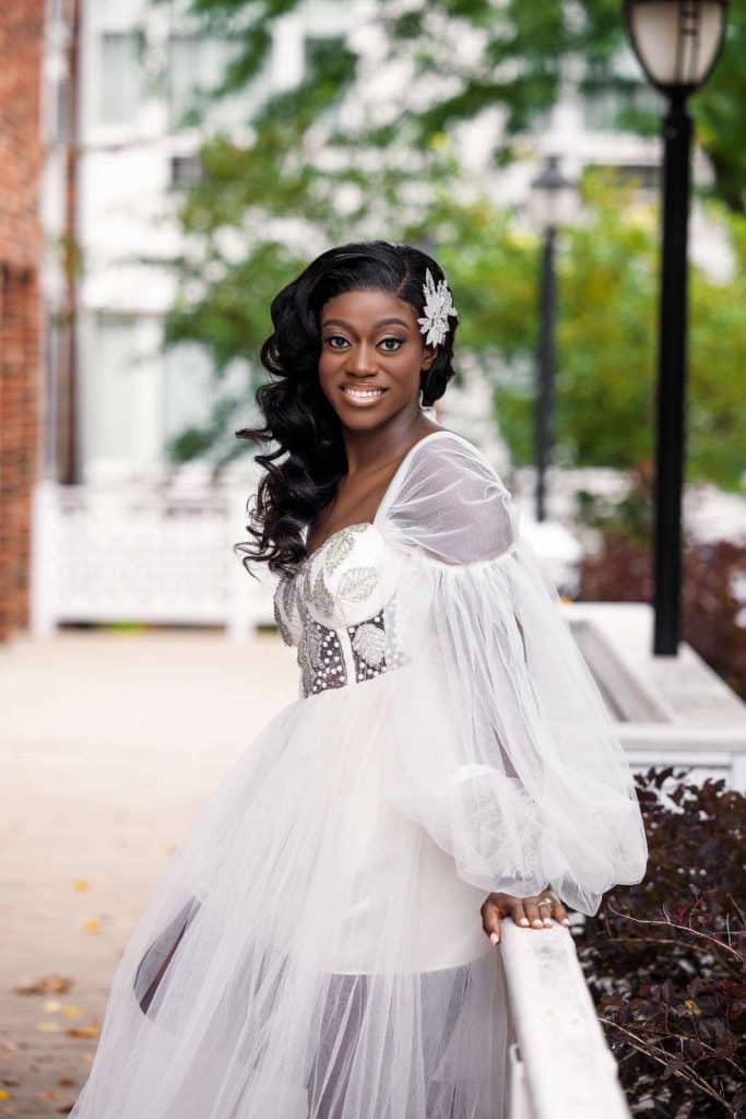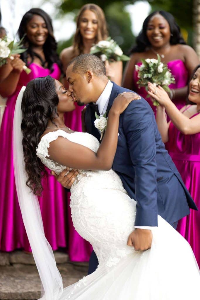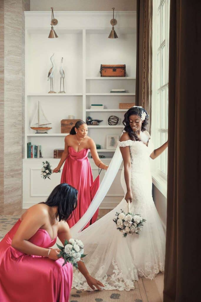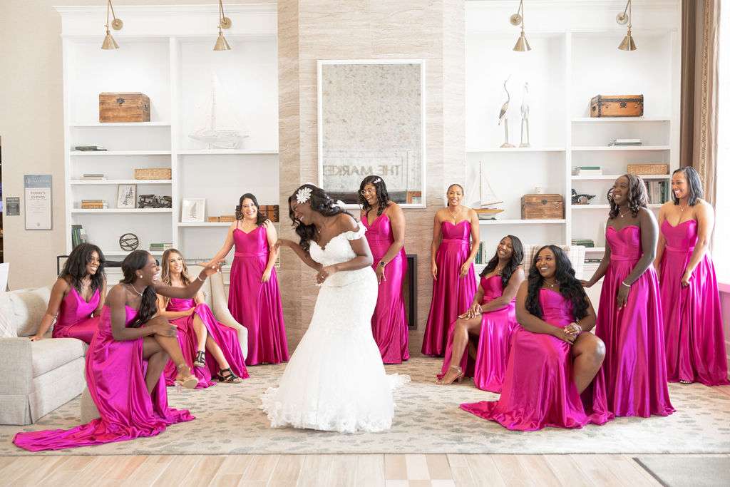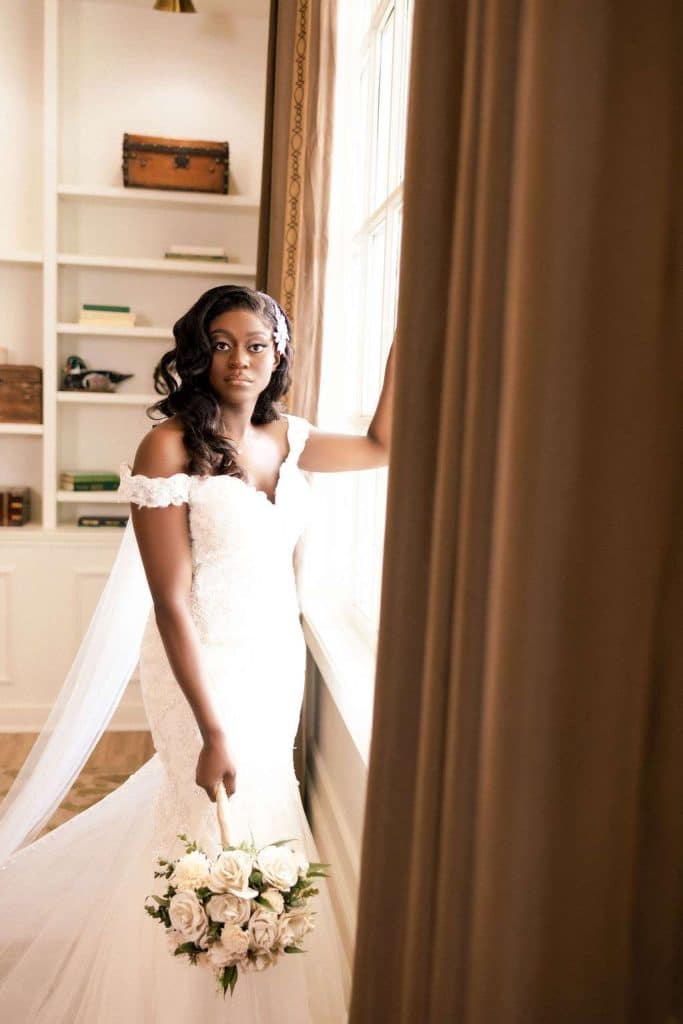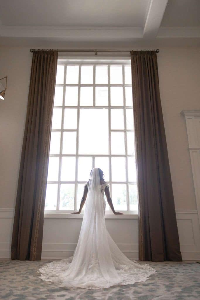 Before finding the dress, Chidera tried on eight different dresses in three stores. Her matron of honor, Tierra, helped her find a store that fit her vision. “I knew the dress was the one by how perfectly it fit me and the wonderful details within the dress,” Chidera said.