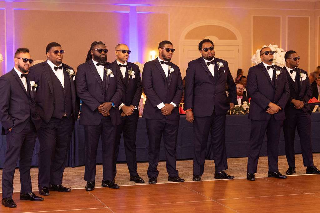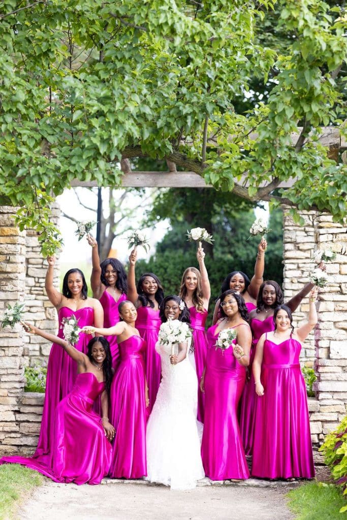 The amount of guests wearing custom-tailored Nigerian clothing and participating in Nigerian culture brought the families together. Chidera had 17 asoebi ladies at her side, all of whom wore fuchsia Nigerian fabric and fuchsia head wraps. Terrance had 11 asoebi men who wore white clothing and fuchsia caps.
