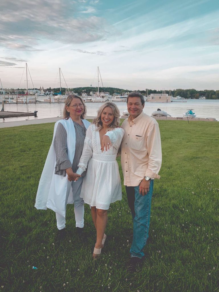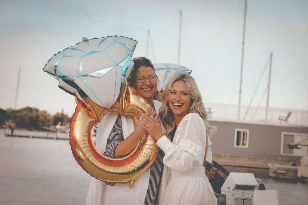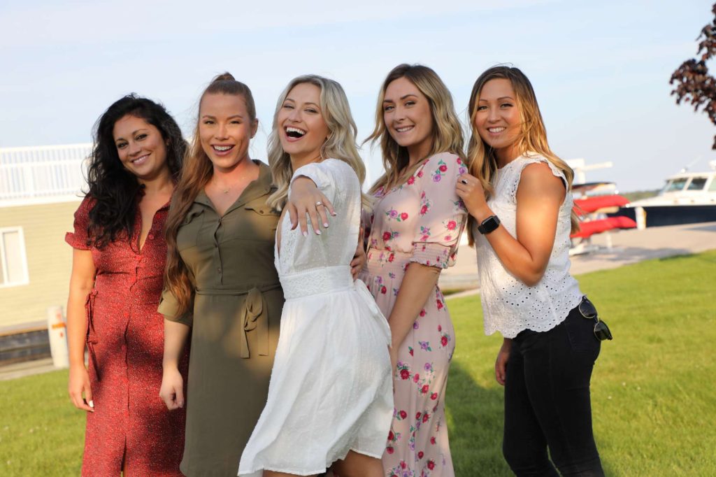 Every Labor Day Weekend since we started dating, Brandon and I have enjoyed a long weekend up in Door County. The weekend played out just as most of our Door County weekends play out, but it ended in a way that I did not suspect! So flash forward to September 1st. The day was planned out as such: brunch at Scaturros, wine tasting at Stone’s Throw, a photo shoot with Elena and Gretchen (that’s normal for them), and dinner! However, the only thing that panned out was brunch. At which point Elena pretended she didn’t feel well. Therefore, we set to go to the winery alone. On the way to the winery, Brandon made a detour. I was confused, but didn’t think too much of it because honestly he was a little hung over and was acting weird all day (shocker). The detour was a pit stop in Fish Creek “to take a little stroll and look at the water.” This is something Brandon and I do all the time when in Door County, so although kinda weird, it wasn’t weird enough for me to question. A little stroll down to the water, a quick photo of the view for Instagram, and a walk through the woods later and then “it” happened. As we were making our way back to the car, Brandon pulled on my shoulder to have me pause. The proposal was short and sweet and perfectly “us”. After the proposal, we enjoyed wine and a pizza at Stone’s Throw. Later we arrived back for what I now thought was to be cocktails and dinner at the Yacht Club – celebrating our engagement with Brandon’s family. But, as we pulled up to the restaurant, I looked over and immediately started bawling. I saw all of my favorite people – family, friends, and Brandon’s family all there for a surprise engagement party! The day and the night were unforgettable!”