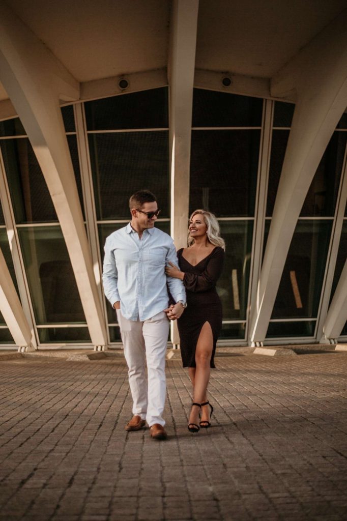 Brandon and I met in 2014 about two weeks before we both graduated from undergrad. I was home for the weekend and went out with a friend, and he was doing the same! Two total strangers who just happened to meet. I like to joke that we met “the good ol’ fashioned way… at a bar” haha! We went on our first date the very next day, and we were together ever since! I don’t believe in “love at first sight” and I don’t think Brandon does either, but I remember thinking after our first date, “you’re it.” I just knew that he would be my husband someday!