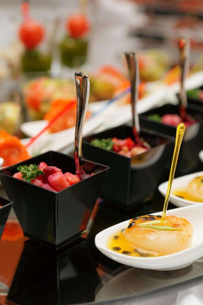 You should designate a certain amount that you want to spend on venue, food and drink, understanding that the percentage of these will be more than half the total. A few factors that will affect the total food cost is if you are having a plated dinner versus a buffet, cocktail hour, or special add-ons like a dessert bar. That is why it’s important to set a budget you are comfortable with, and selecting the items you need and then you can add extras if the budget allows.