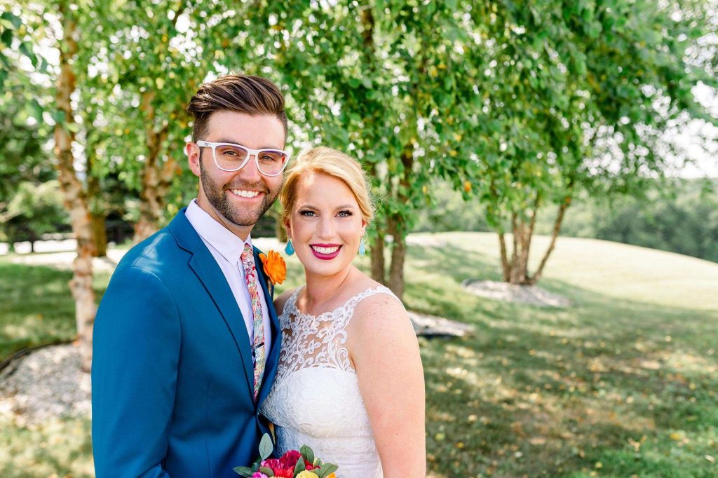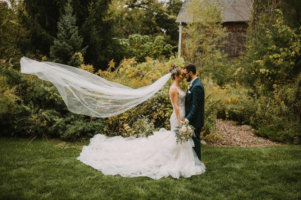 Justin and Jessica’s afternoon wedding at the Farm at Dover in Kansasville, Wisconsin, was a beautiful bright spot in the season of Covid. The bride’s advice: “Invite people who you love and who love you just as much back! It’s your big day. Enjoy it, enjoy the people, and eat the food—it’s amazing!”