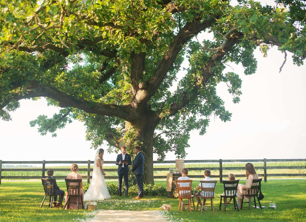 After planning and canceling three wedding dates due to the pandemic, Jason and Ashley landed on an elopement-style ceremony under an old oak tree with just six guests—including themselves!