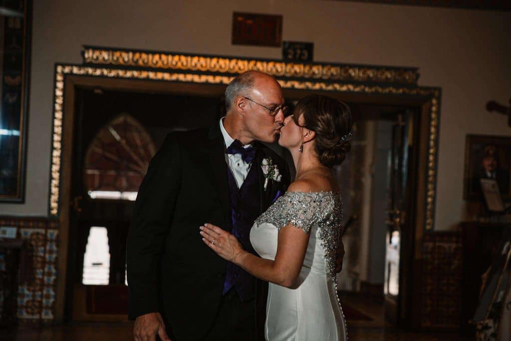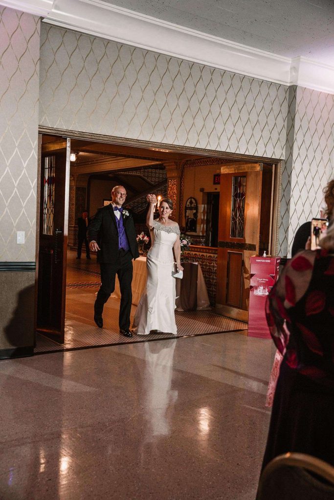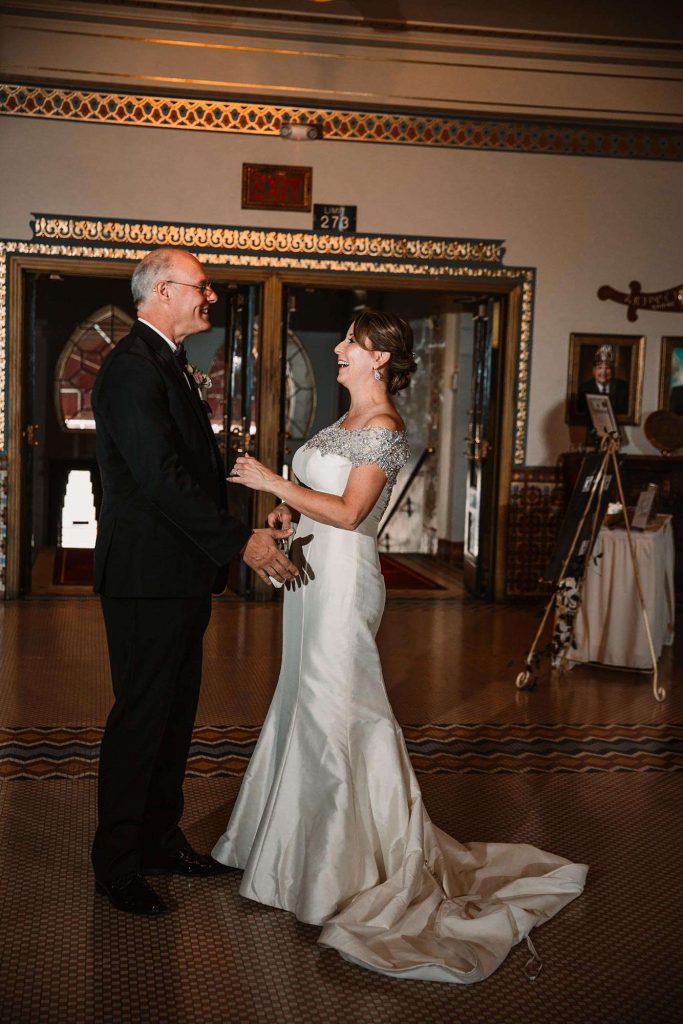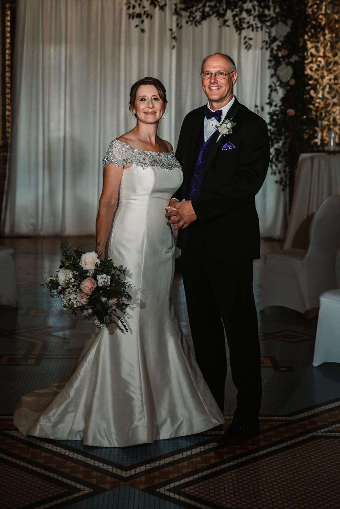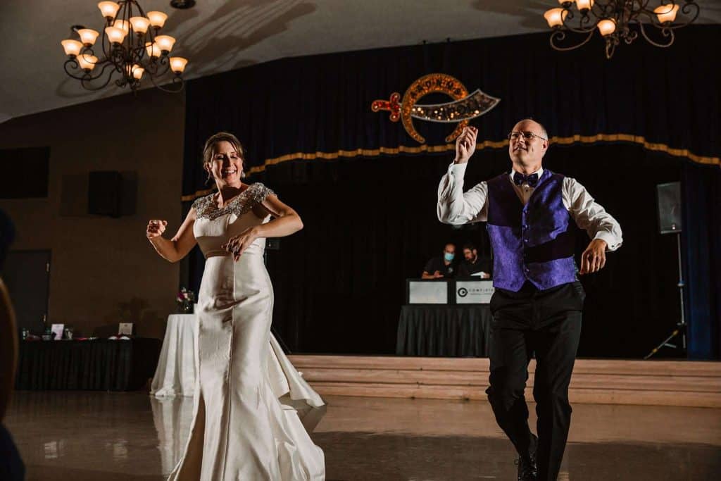 The spacious Tripoli Shrine Center proved to be an ideal location. “The huge ballroom comfortably fits large groups and easily accommodated social distancing for our wedding guests,” Rena says. The bride and groom thoroughly enjoyed working with the staff at the Tripoli too: “The new Director of Sales, Amy, is a dynamo! Amy is an exceptional coordinator and partnered with our wedding planner to make our day perfect. She has been in the industry for some time and clearly knows what she’s doing. Thank you Amy and the Tripoli for making our day so elegant and perfect.”