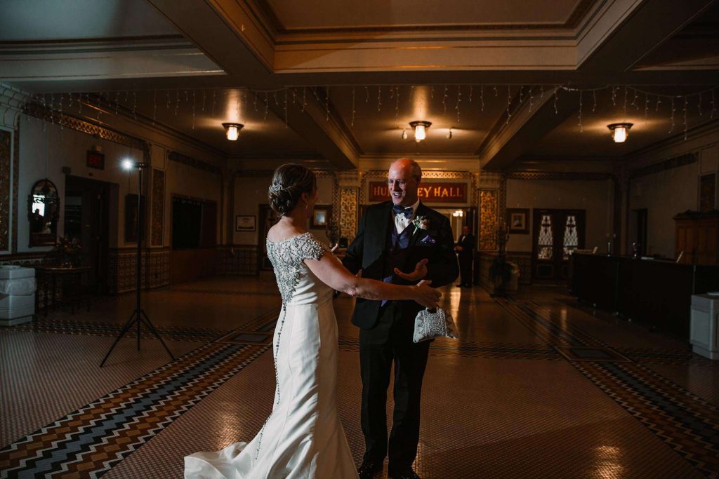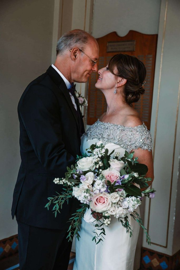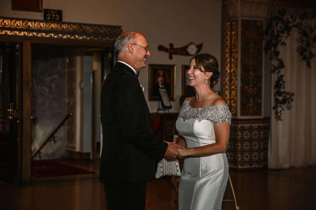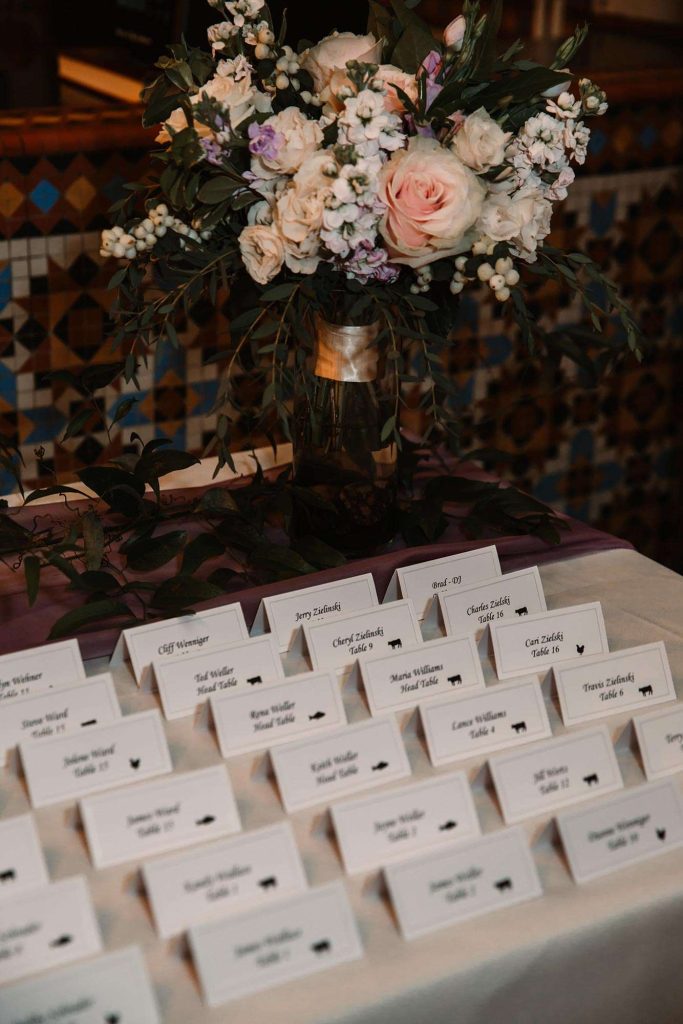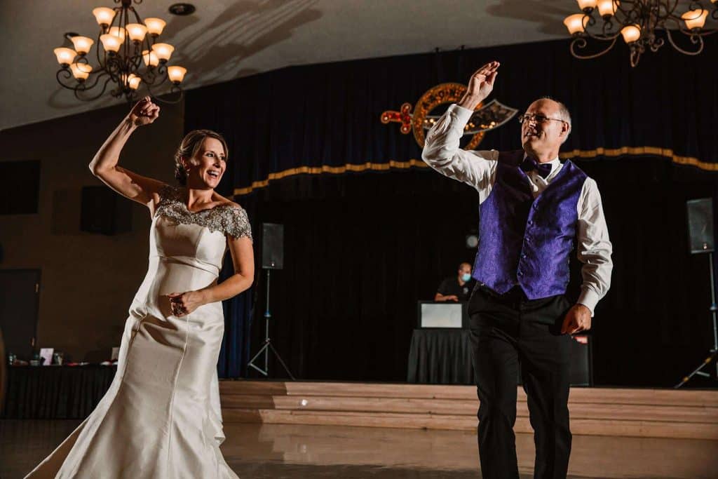 The spacious Tripoli Shrine Center proved to be an ideal location. “The huge ballroom comfortably fits large groups and easily accommodated social distancing for our wedding guests,” Rena says. The bride and groom thoroughly enjoyed working with the staff at the Tripoli too: “The new Director of Sales, Amy, is a dynamo! Amy is an exceptional coordinator and partnered with our wedding planner to make our day perfect. She has been in the industry for some time and clearly knows what she’s doing. Thank you Amy and the Tripoli for making our day so elegant and perfect.”