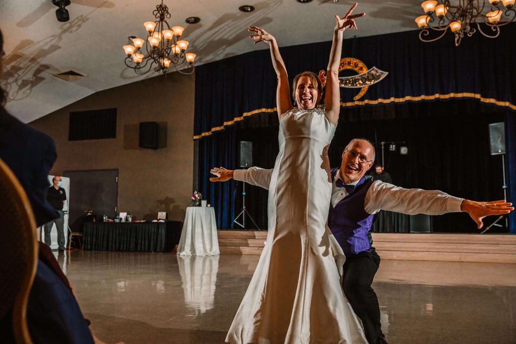 Following dinner, there was of course dancing, as well as a fun photo booth provided by Complete Weddings and Events—”worth the money,” Rena notes. Also worth the effort was Keith and Rena’s first dance: “Our first dance was a choreographed number on which we worked extremely hard. The guests loved it—especially the big dip! We booked Fred Astaire in Mequon when we were at a bridal show. The staff at Fred Astaire were spectacular. Victor and Emily are incredible teachers. We fell in love with dancing and had so much fun learning!”