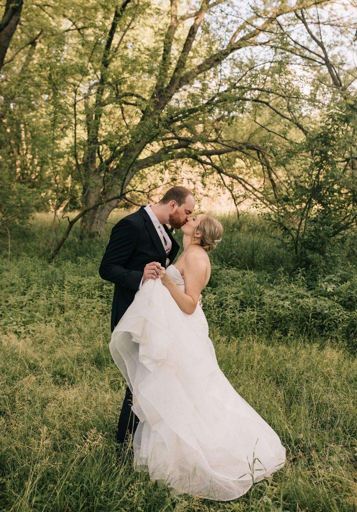 Ryanne and Brayden had planned a March 2020 wedding and learned just 10 days before that they’d have to postpone. Their venue, Chandelier Ballroom, was able to accommodate a new date in late June. “Michele and the staff at Chandelier Ballroom deserve all the praise I can give,” says Ryanne. “Michele offered to hold several dates after we postponed, to allow us time to decide. She also effortlessly pulled our ceremony together in under two weeks. Our guests reached out several times about the kindness of the staff.”