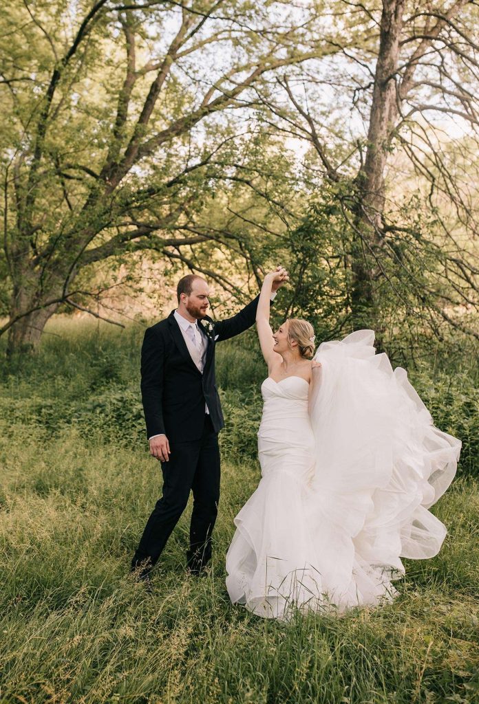 Brayden and Ryanne also had to pivot their photography plans. Originally they had booked Devon Rose Photography for their March wedding. “Devon did an incredible job on our engagement photos, and we loved the moments we had with her. Unfortunately, she was booked in June and we had to find a new photographer.” Friends recommended photographer Jenna Parr of Indie Fern Photo, who was luckily available on Ryanne and Brayden’s June date. “She has a beautiful, kind heart and a clear passion for photography. Jenna really focused on what our wants were—not her own.”