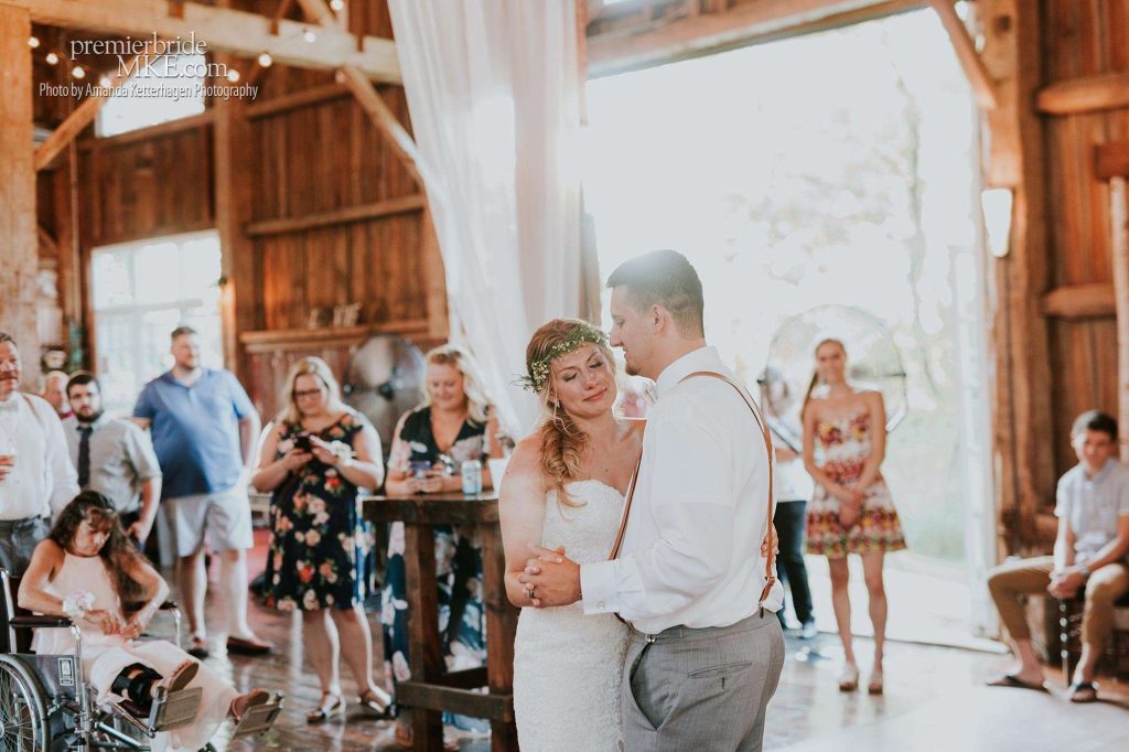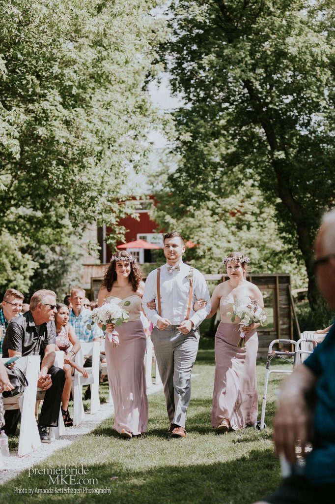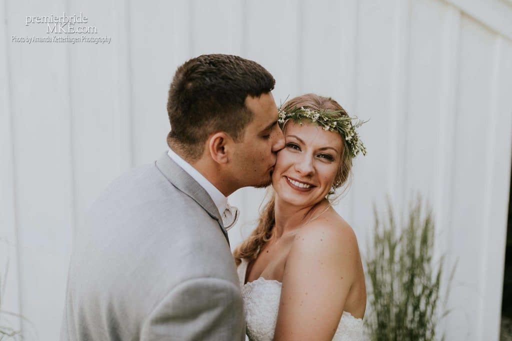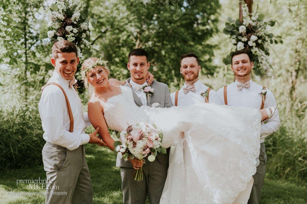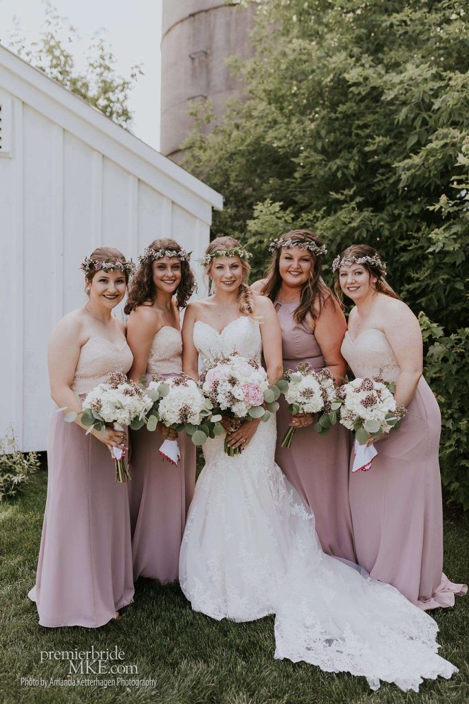 Sam and Alex planned a gorgeous, rustic wedding with a ceremony and reception both at Cupola Barn. The look was handmade and DIY, with lots of lace, greenery, and wildflowers accented with a color palette of mauve and tan. To match theme, two-toned bridesmaids dresses came from Savvy Bride. Sam found her rings at Husar’s House of Fine Diamonds and her lacy gown at Bliss Bridal. Rounding out the natural look, the bride and her maids all wore real flower crowns on the day of the wedding. “They turned out so beautifully!”