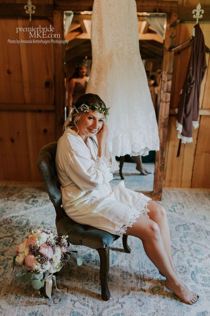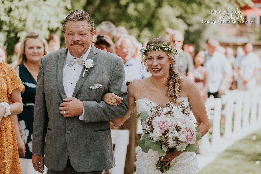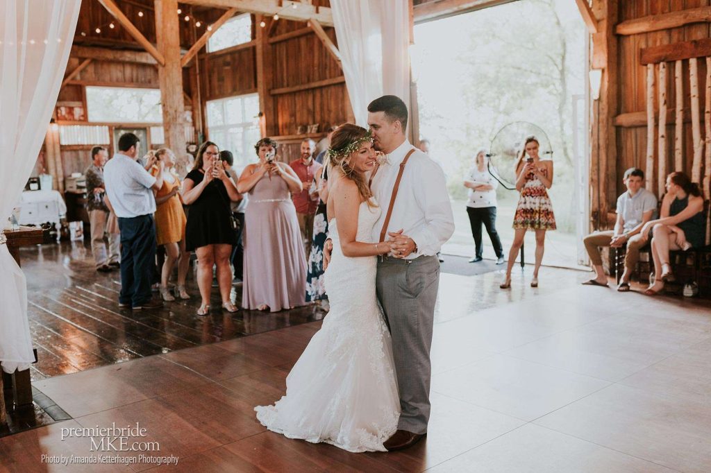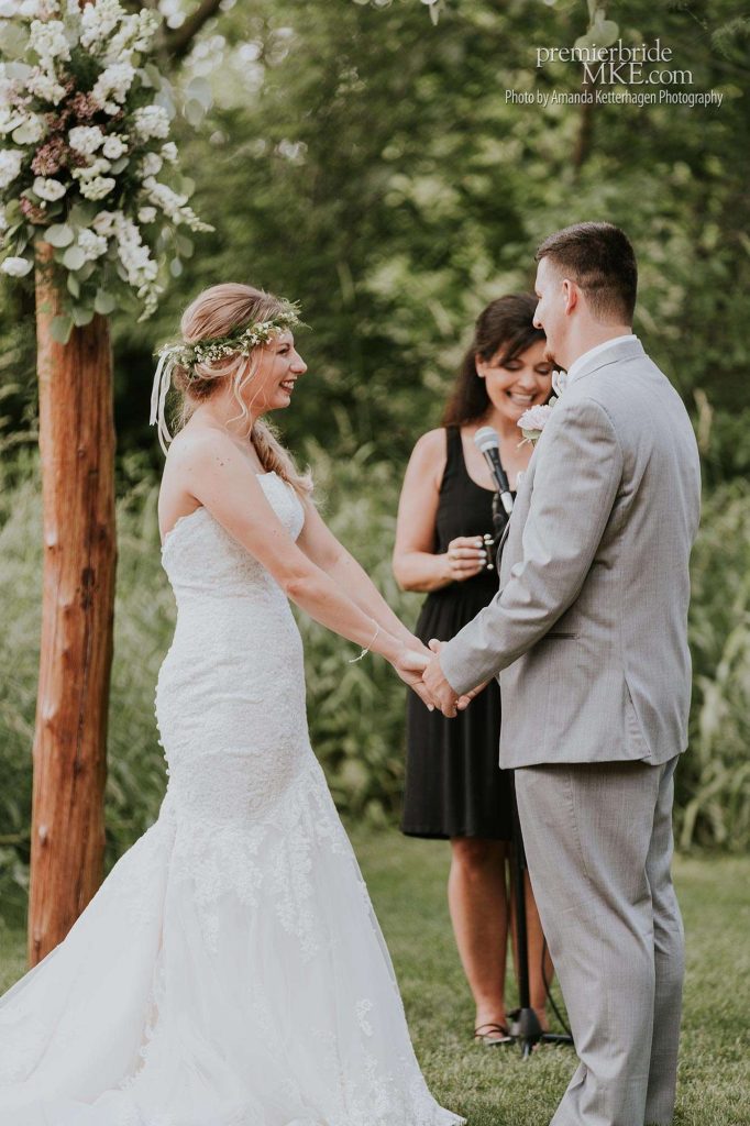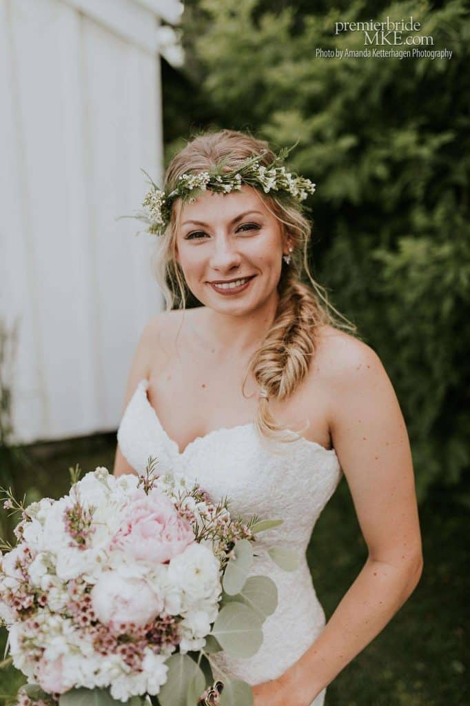 Sam and Alex planned a gorgeous, rustic wedding with a ceremony and reception both at Cupola Barn. The look was handmade and DIY, with lots of lace, greenery, and wildflowers accented with a color palette of mauve and tan. To match theme, two-toned bridesmaids dresses came from Savvy Bride. Sam found her rings at Husar’s House of Fine Diamonds and her lacy gown at Bliss Bridal. Rounding out the natural look, the bride and her maids all wore real flower crowns on the day of the wedding. “They turned out so beautifully!”
