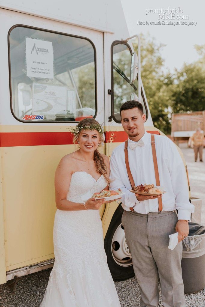 Since they could bring in whatever food and drink their hearts desired, the bride and groom went for taco and barbecue food trucks instead of a sit-down dinner. Dessert was a lovely, small naked cake topped with berries and whipped cream from Sweet Perfections.