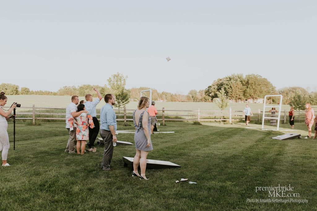 During the Cupola Barn reception, Alex and Sam wanted to encourage guests to get outside, so they had ladder toss, games of bags, tic tac toe, and a s’mores bar outside for people to play and mingle. “I still cannot get over how amazing the venue was,” Sam gushes. “The owners always responded back to my emails in a timely fashion and prepared me with a wedding timeline and questions. The owners also had no restrictions on vendors, which ultimately helped us save money and enjoy our day because we could pick exactly what we wanted.”