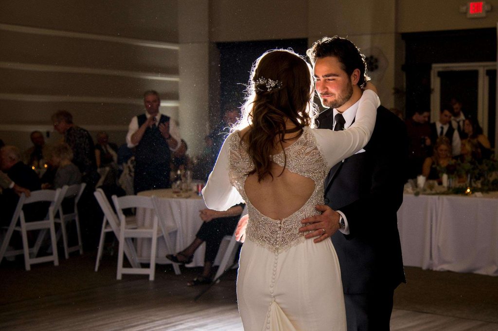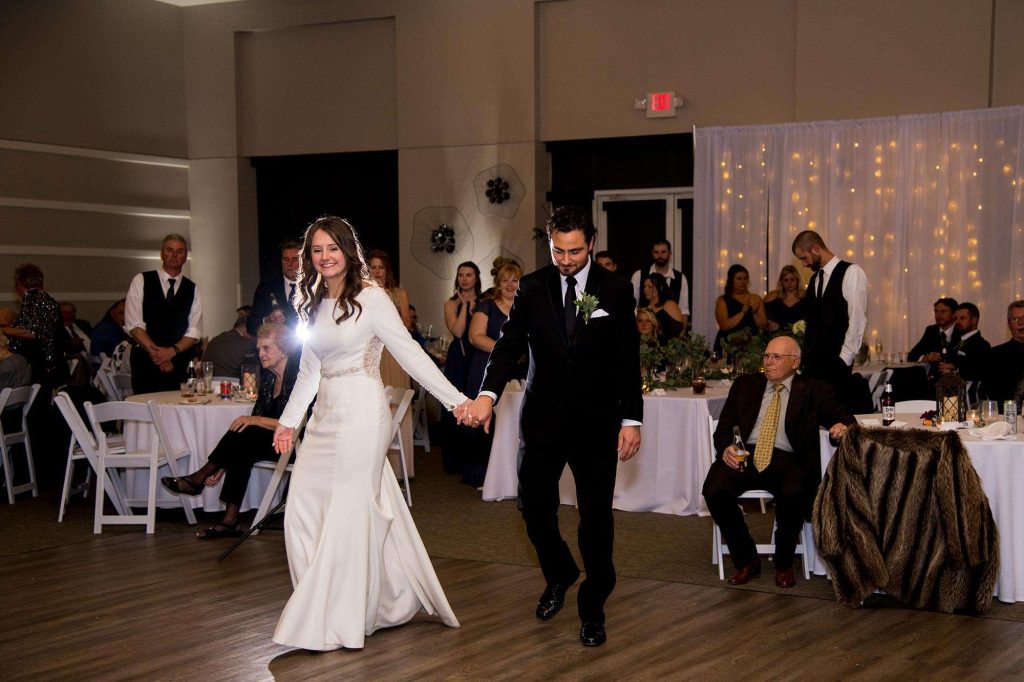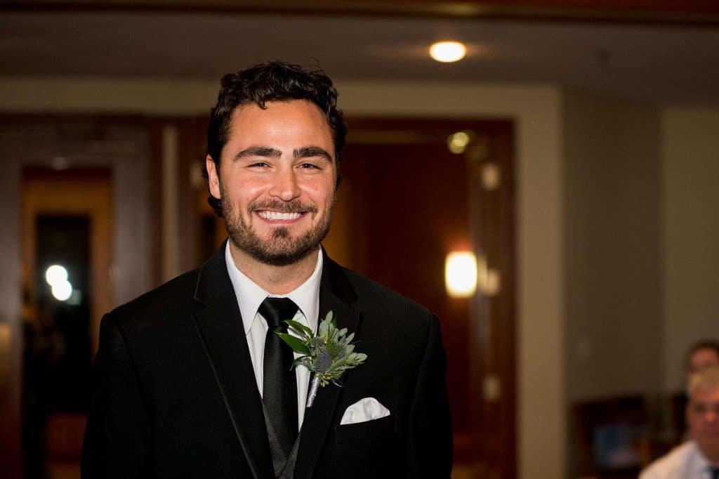 Sam and Zach were able to spend cocktail hour with their guests, which they loved and would recommend to other couples. “Cocktail hour was in a separate room from dinner, making it more of a grand experience. Dinner was wonderful, the speeches were amazing, and the live music was super fun. We didn’t have any games or interruptions — not even a garter or bouquet toss. We just wanted to keep the night simple.”