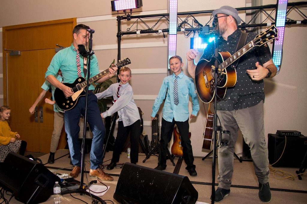 Toward the end of the evening, both Zach and Sam’s dad had a chance to get up on stage with the live band. “Zach was forced on stage to play some guitar and do some singing,” Sam says. “He was eventually joined by his brother, the Best Man, who ended up taking his shirt off for everyone.” Sam’s dad treated the crowd to his drumming skills, jamming out with the band to “Sweet Home Alabama.” The proud bride says, “He killed it! And loved every second.”