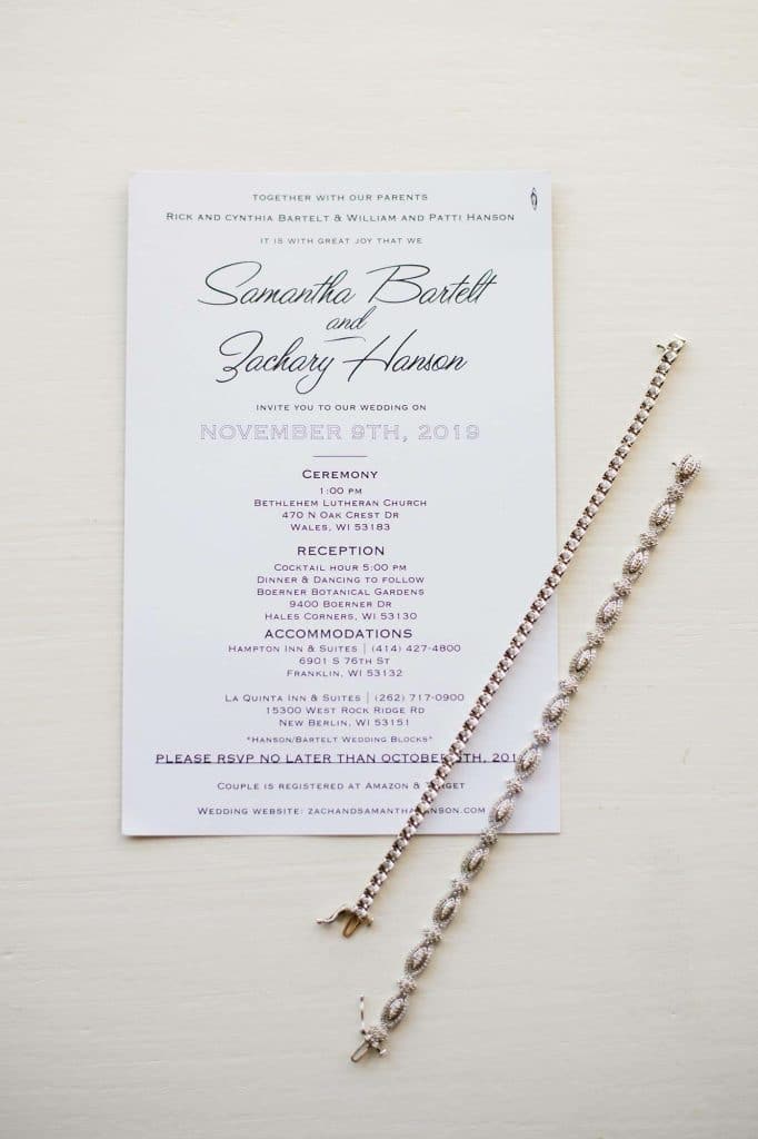 Sam and Zach planned a November wedding with a church ceremony and a reception at the Boerner Botanical Gardens. “It was very classic, clean, and simple. There were about 250 people, and we were more concerned about having a good time than we were about all the tiny details.”
