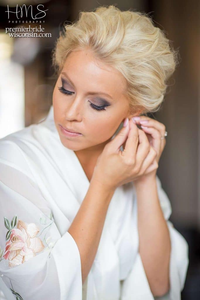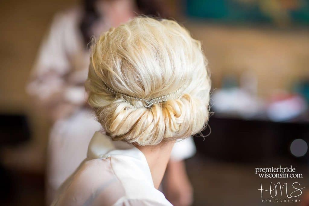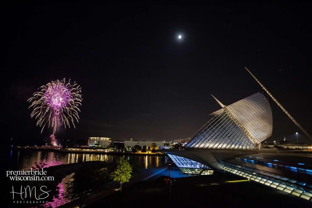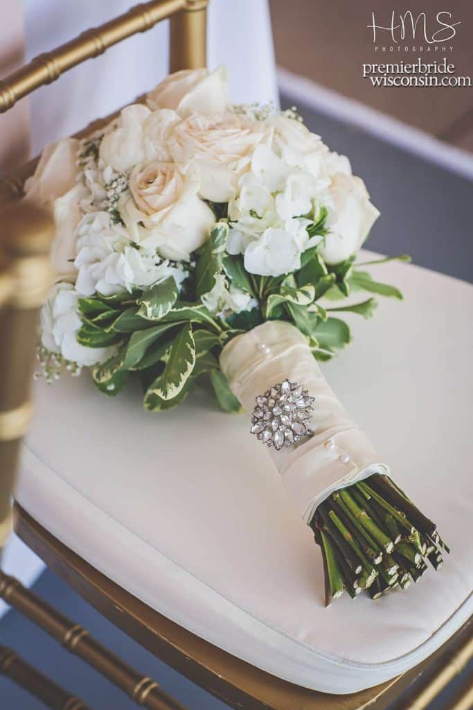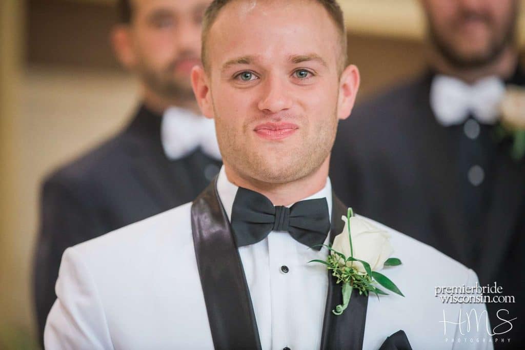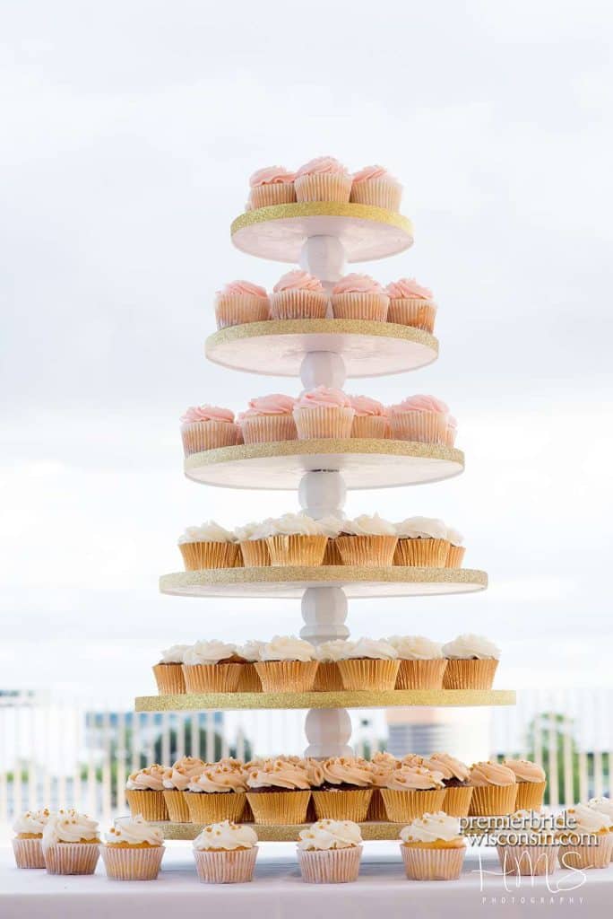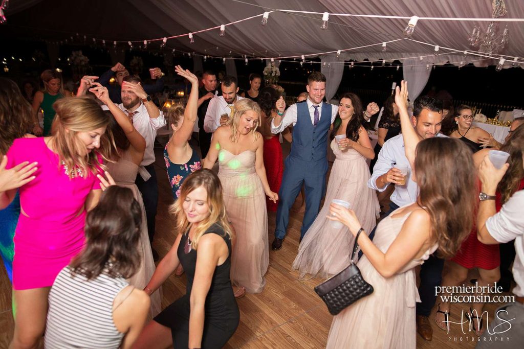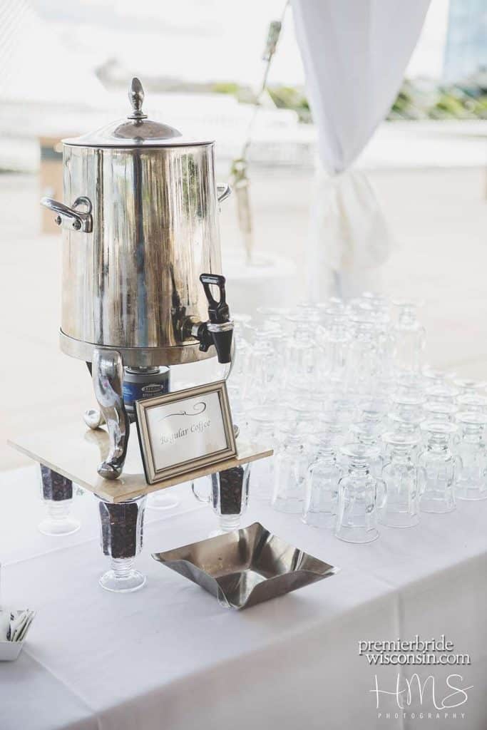 The couple planned a romantic, glamorous wedding, with a church ceremony and a tented lakefront reception at the Milwaukee County War Memorial. Samantha found her dress at Gigi of Mequon. Her favorite part of the ceremony was walking down the aisle toward Kyle, and one of her favorite moments of the entire day was walking into the reception. “Kyle and I walked in together and it was just breathtaking. It was so fun to see how beautiful everything turned out. We chose not to have any side walls on the tent, so we could see the lake. The day couldn’t have been more beautiful — 75 degrees and sunny, with an orange and pink sunset. It was perfect.”