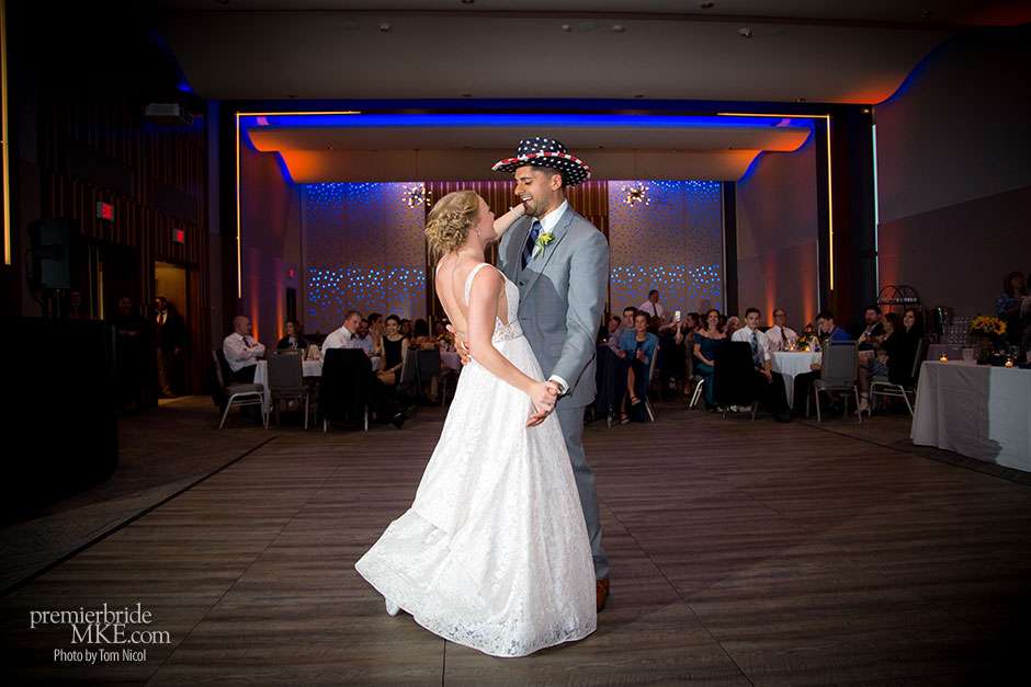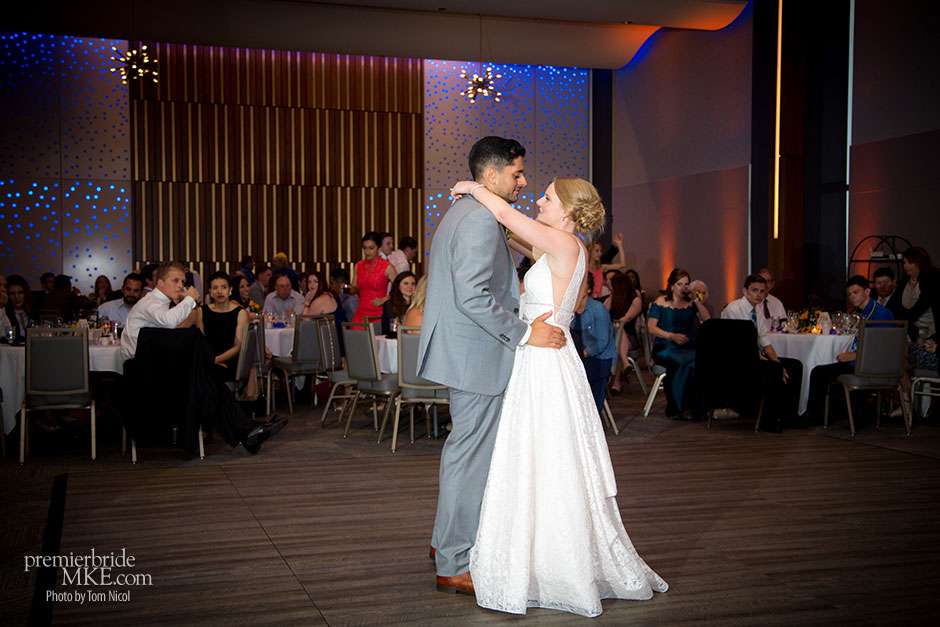 Mike and Sarah planned a June wedding at the War Memorial in downtown Milwaukee. The ceremony was held at the Fitz Plaza with the reception at Memorial Hall. “The venue was remodeled over the winter, and although we were privy to the mock-ups, the results exceeded our expectations. The venue overall felt competitively priced, modern, and flexible. The on-site coordinator, Jennifer, was extremely patient and responded quickly to our many questions. She helped us find a few of our vendors and proactively addressed details of the day that we hadn’t even considered.”