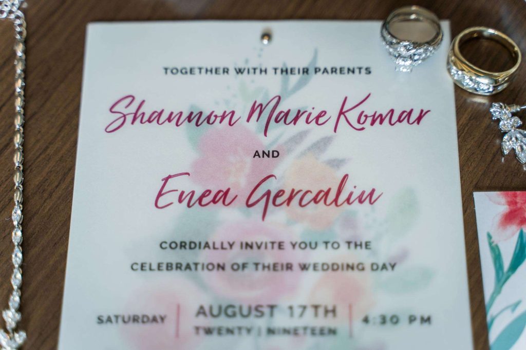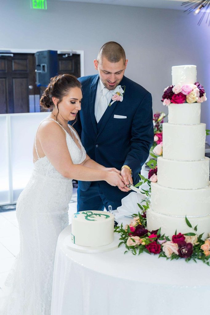 Enea and Shannon were particularly impressed by the food and drinks at The Ridge: “It was all amazing and we received so many compliments!” They had decided early on that food and drink would be a major part of their wedding. “Enea’s family is Albanian, so a lot of their food is similar to Italian or Green foods. Many of our guests were Albanian and many of them were from out of the country as well, so we wanted to cater to both American and Albanian tastes.” There was a large antipasto display during cocktail hour, passed hors d’oeuvres, and an open bar. For dinner, The Ridge served salad, a palette cleanser, choice of prime rib or mahi mahi, and cake for dessert. Pizzas were the late-night snack.