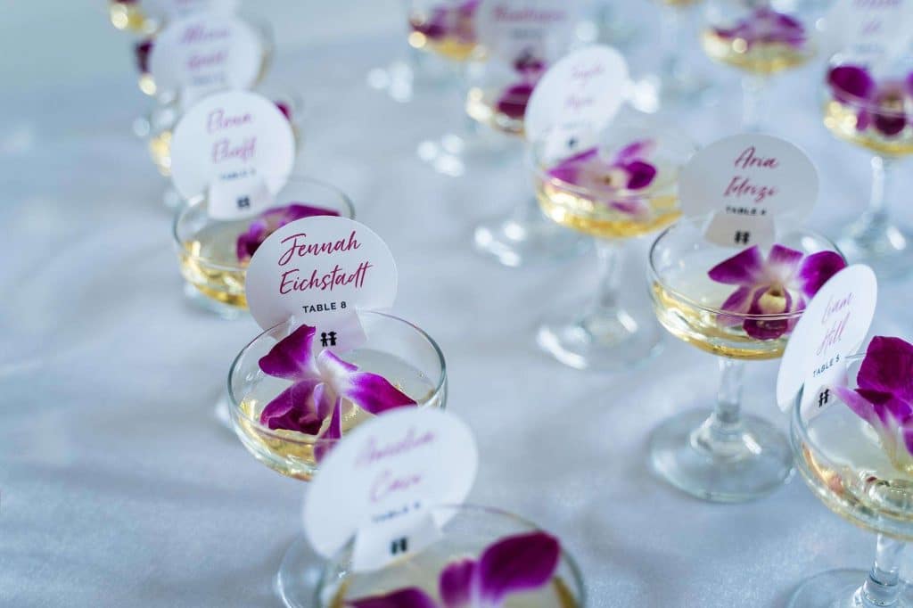 The bride and groom made the ceremony special with a glass bead pour ceremony. “It’s very similar to the sand pour ceremony, but with glass beads. We ordered beads from Unity in Glass. We were able to pick a few colors of glass beads that we could pour into a vase during our ceremony. The glass beads were then sent back to Unity in Glass to be blown into a custom-made vase for us.”