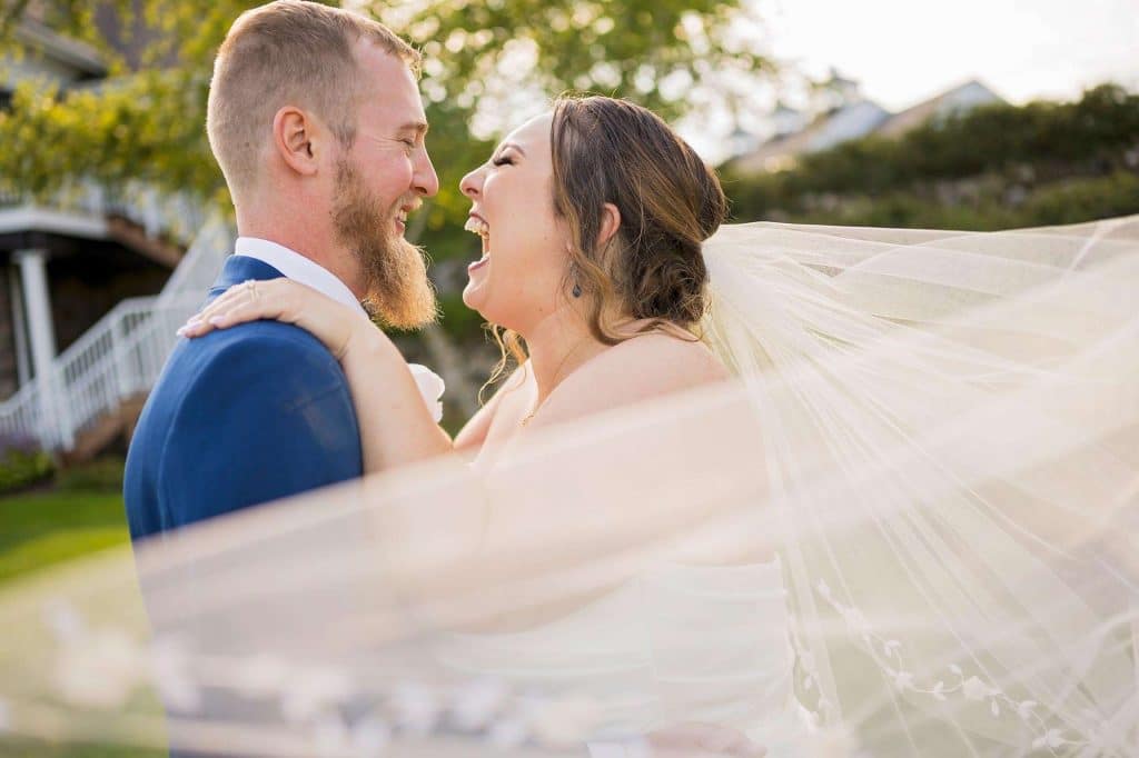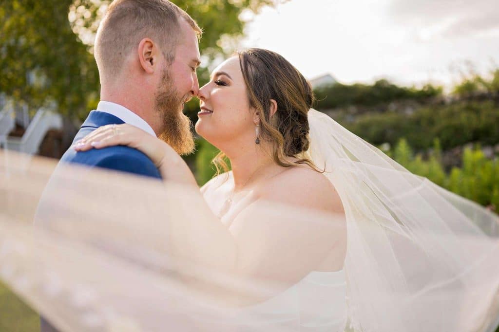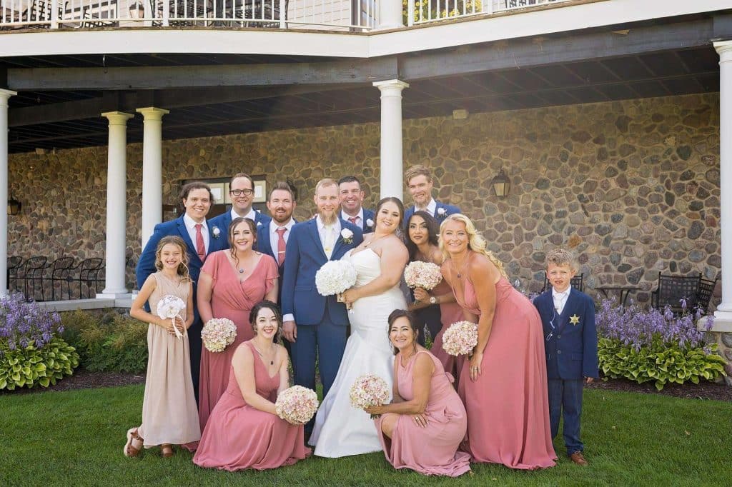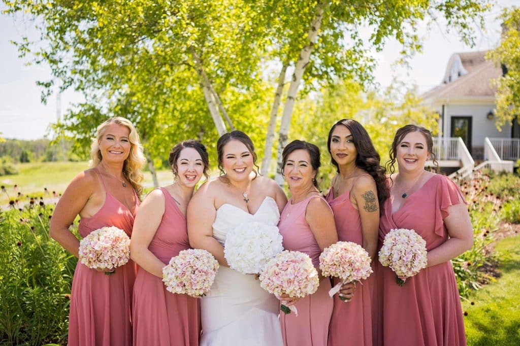 Julia attended Wonderful World of Weddings in January 2023, where she met plenty of local vendors, including their engagement and wedding photographer, Allysha Noelle. Allysha captured all of the special moments of Julia and Ben’s best day. The couple and the bridal party took tons of photos outside on the golf course.