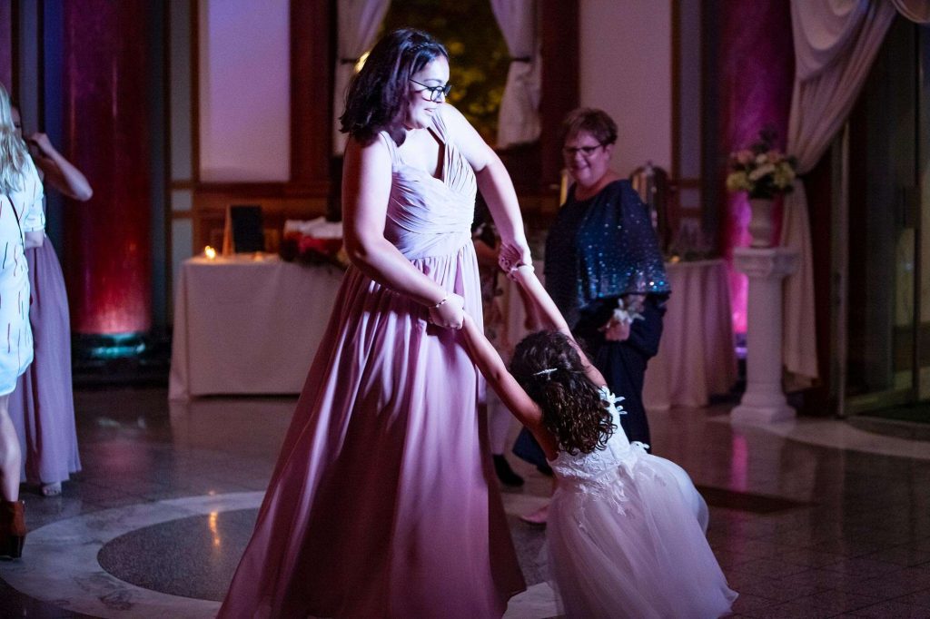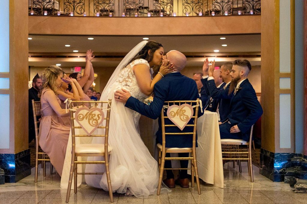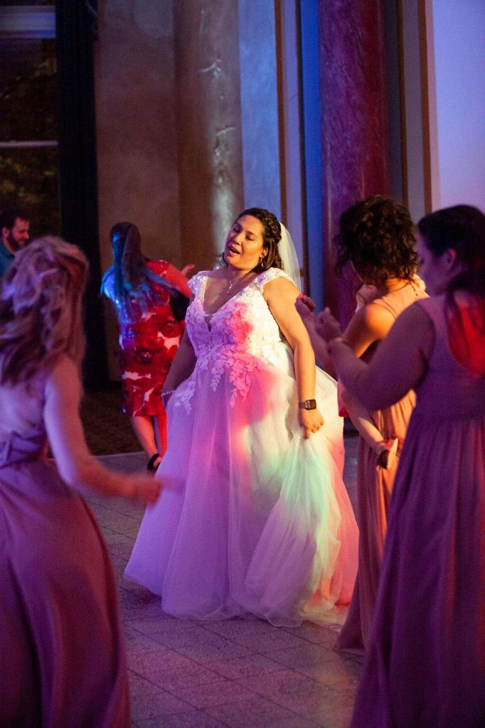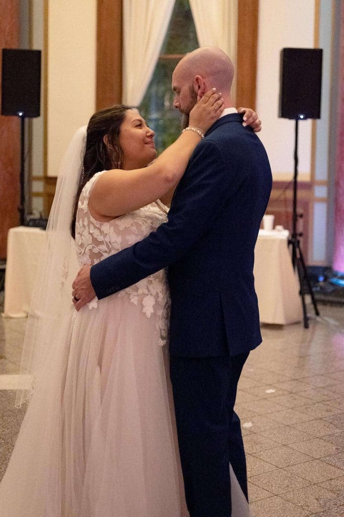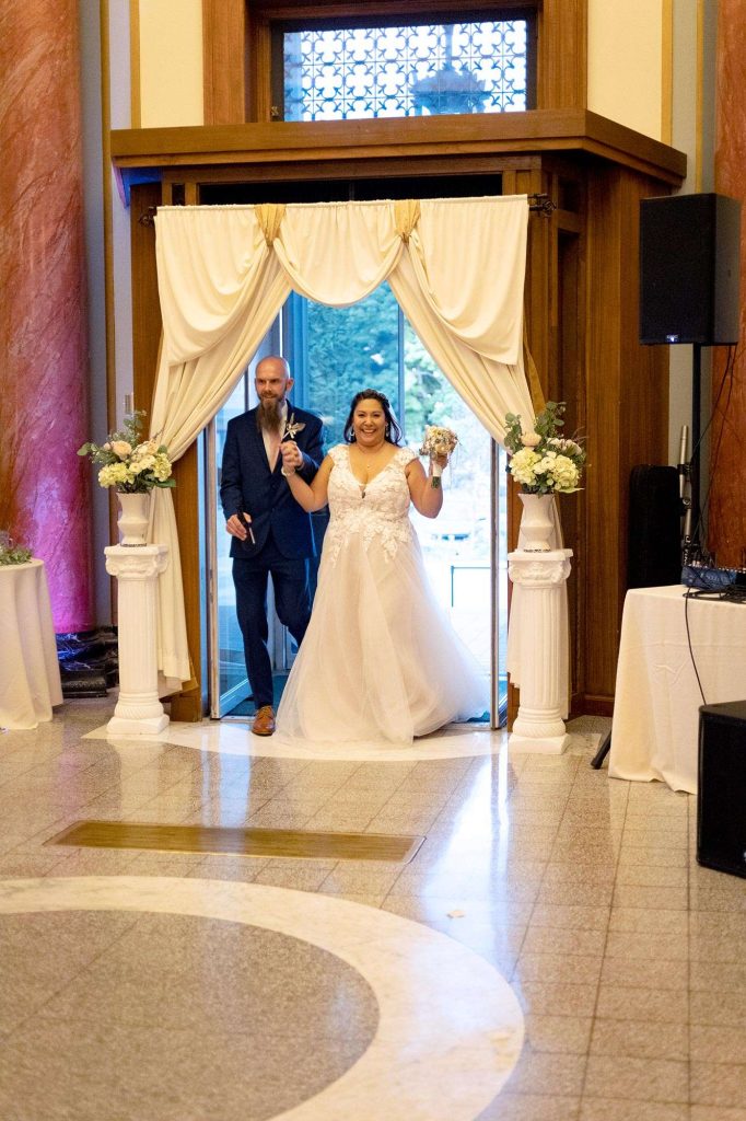 Before memorable dances and bouquet toss, the Rotunda reception started with dinner catered by Chef Jack’s. “They were amazing to work with. Lisa was our go-to and answered any questions we had. She had things running so smoothly on our wedding day that we had no concerns at all. Everyone was so professional and polite. As for the food, we can’t say enough good things. The food was amazing.”