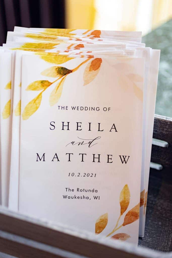 Matt and Sheila had a long engagement with their wedding taking place in October of 2021. With all that time to plan, Sheila went to a number of wedding shows over the years: the Lake Geneva Bridal Showcase, Tuscan Hall Bridal Showcase, and the Bridal Expo in Brookfield.